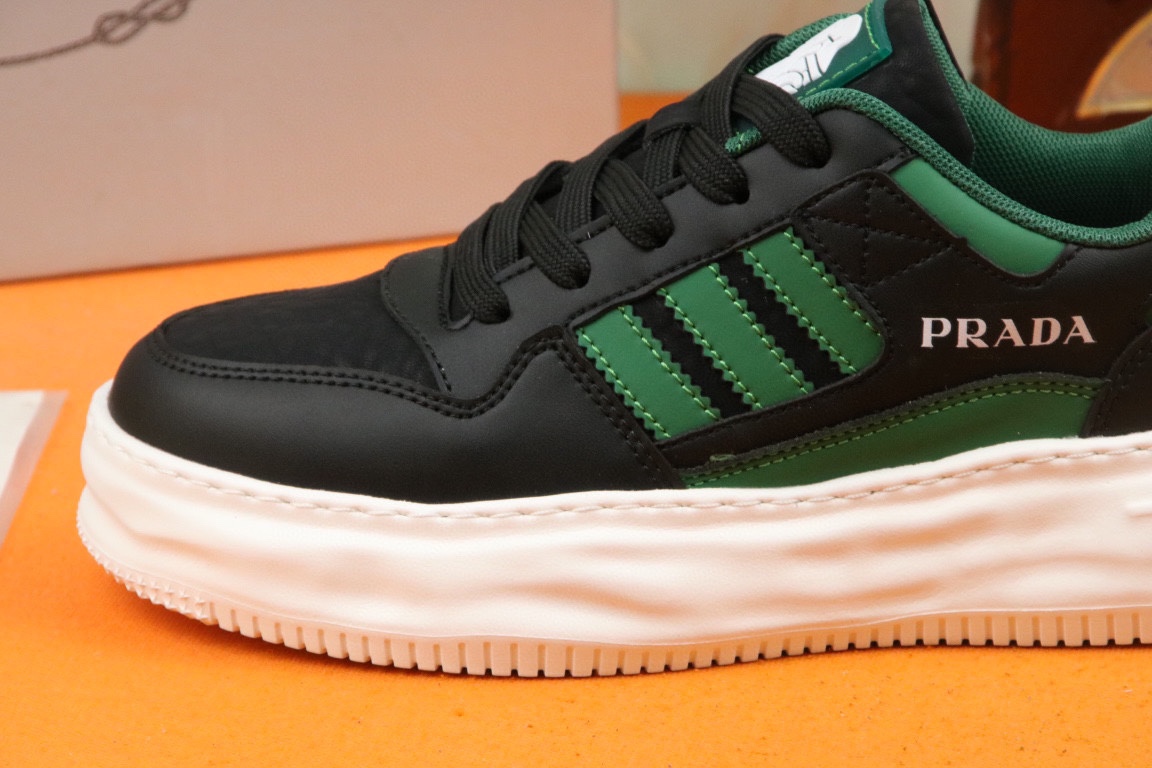 I5 高品质PRADA普拉达上市著名奢侈品牌,专柜同步更新,意大利男鞋时尚杂志季刊封面主推款鞋面采用意大利进口小牛皮,透气网布内里。原版防滑轻质发泡大底,上脚舒适有型。 细节无可挑剔。