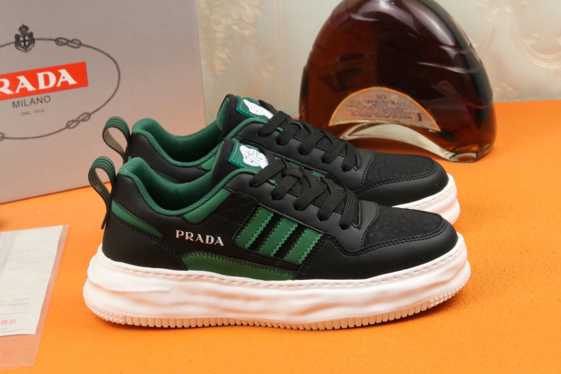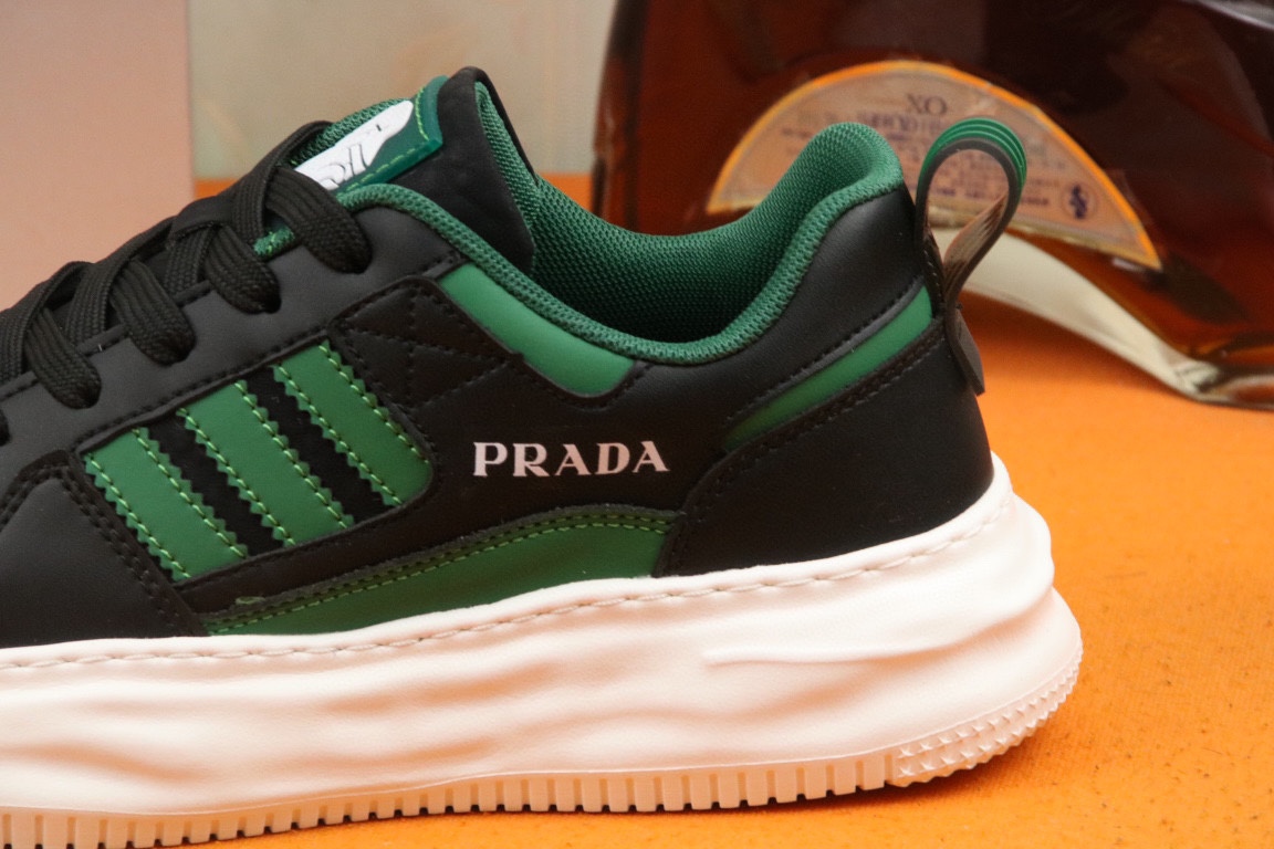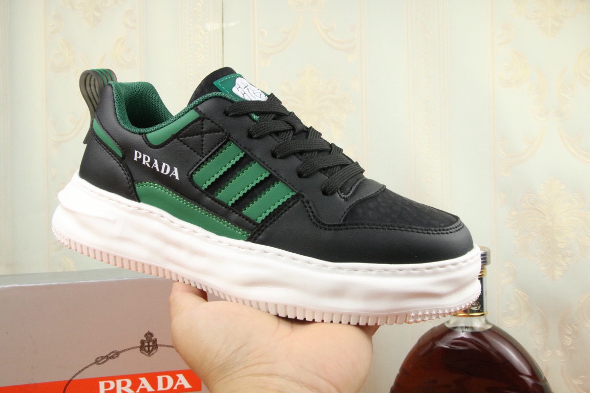 I5 高品质PRADA普拉达上市著名奢侈品牌,专柜同步更新,意大利男鞋时尚杂志季刊封面主推款鞋面采用意大利进口小牛皮,透气网布内里。原版防滑轻质发泡大底,上脚舒适有型。 细节无可挑剔。码数38-43