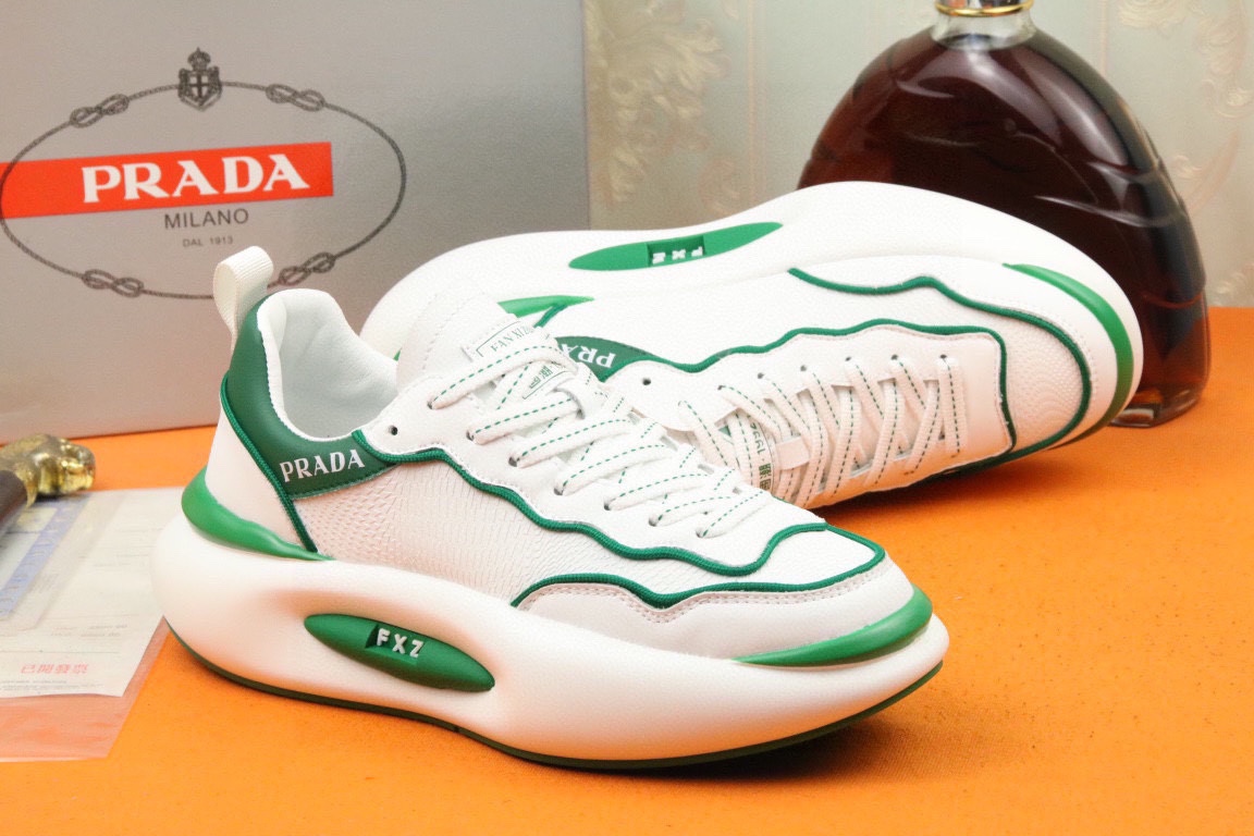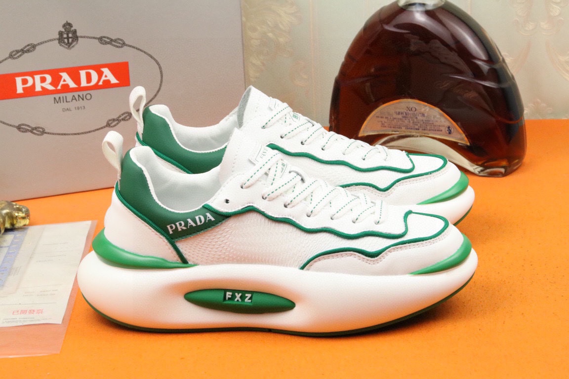 I5 高品质PRADA普拉达上市著名奢侈品牌,专柜同步更新,意大利男鞋时尚杂志季刊封面主推款鞋面采用意大利进口头层牛皮,舒适羊皮内里。原版防滑橡胶大底,上脚舒适有型。 细节无可挑剔。码数38-43