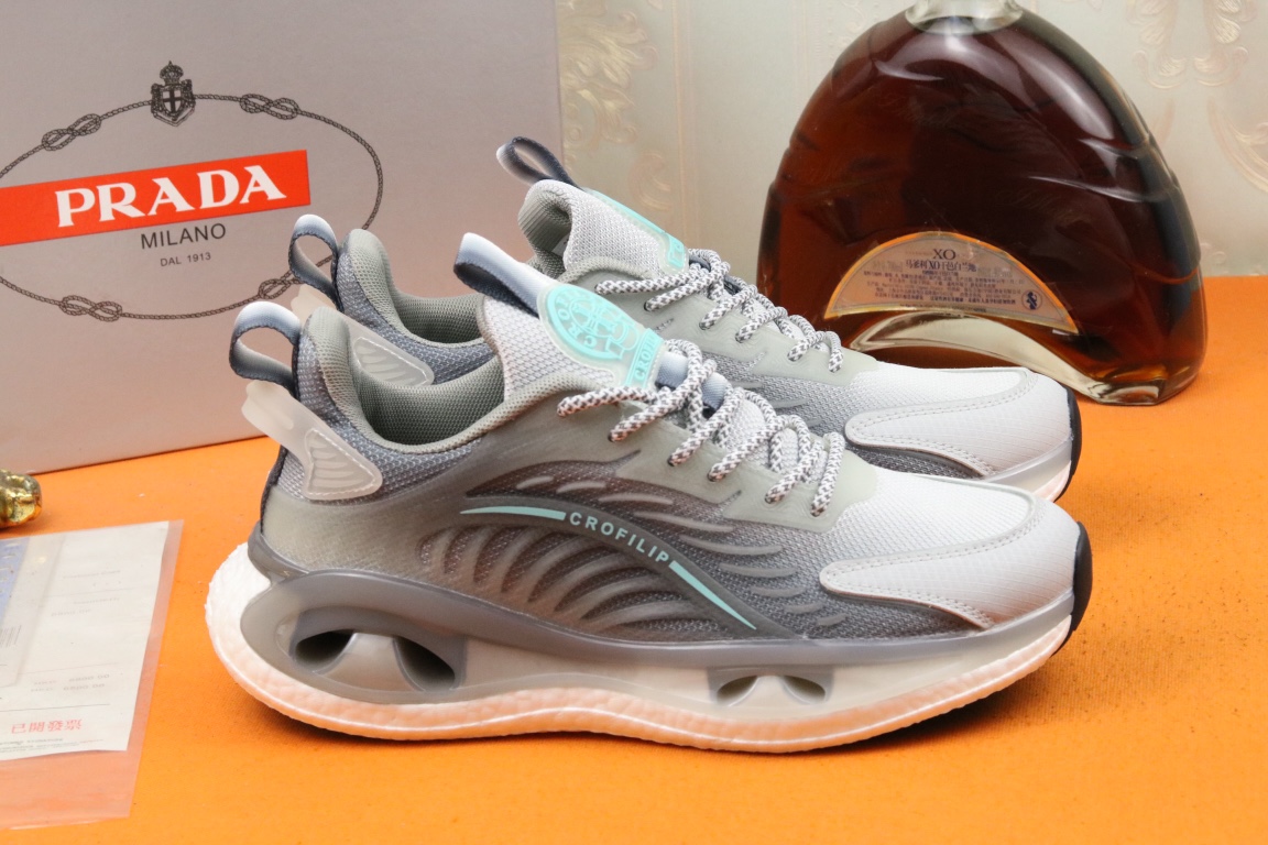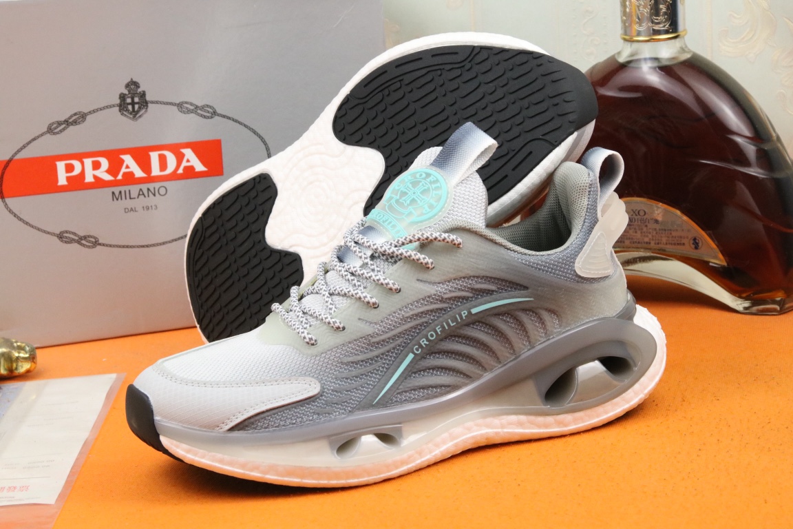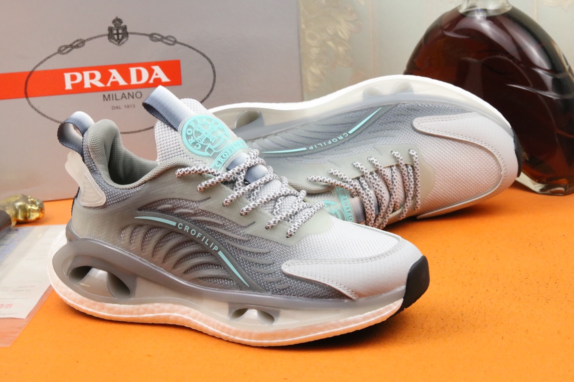 I5 高品质PRADA普拉达上市著名奢侈品牌,专柜同步更新,意大利男鞋时尚杂志季刊封面主推款鞋面采用意大利进口头层牛皮拼接透气网布制作,舒适透气内里。原版二次发泡气垫大底,上脚舒适有型。 细节无可挑剔。码数38-43