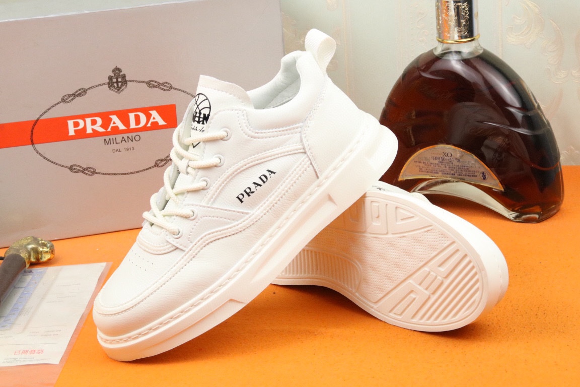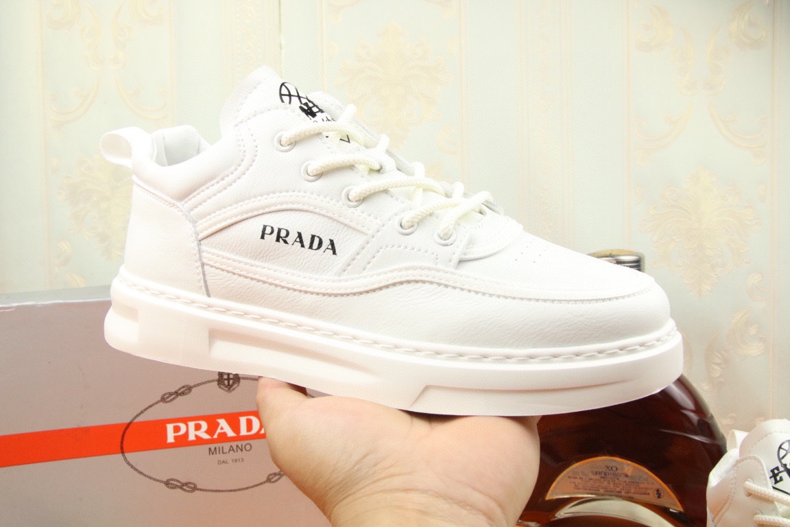 I5 高品质PRADA普拉达上市著名奢侈品牌,专柜同步更新,意大利男鞋时尚杂志季刊封面主推款鞋面采用意大利进口牛皮,羊皮内里。原版轻质发泡大底,上脚舒适有型。 细节无可挑剔。