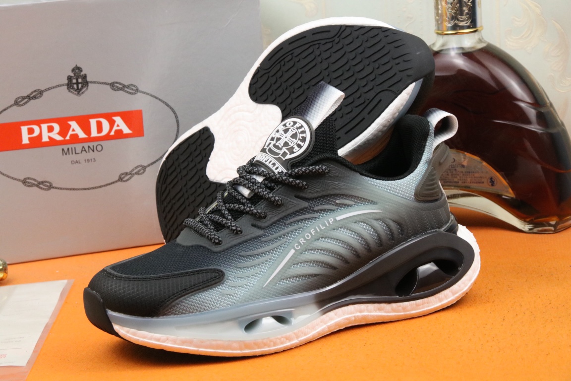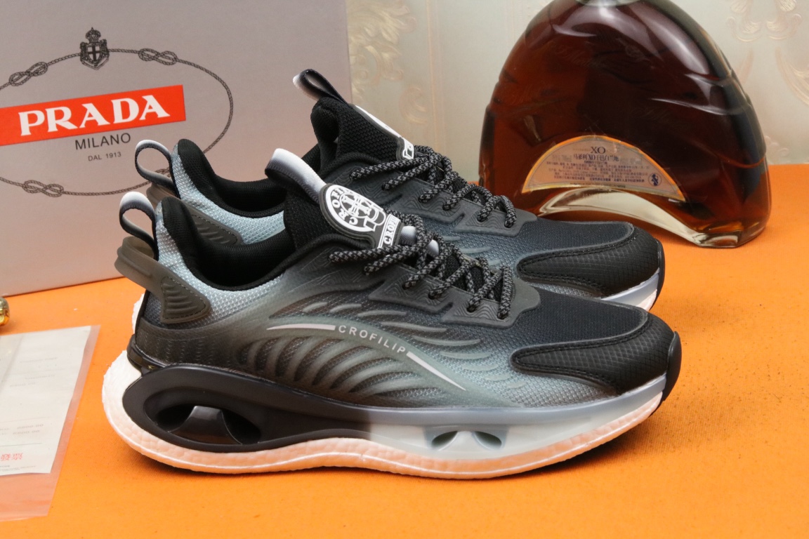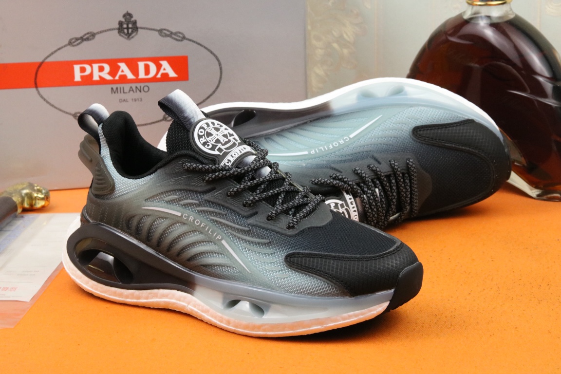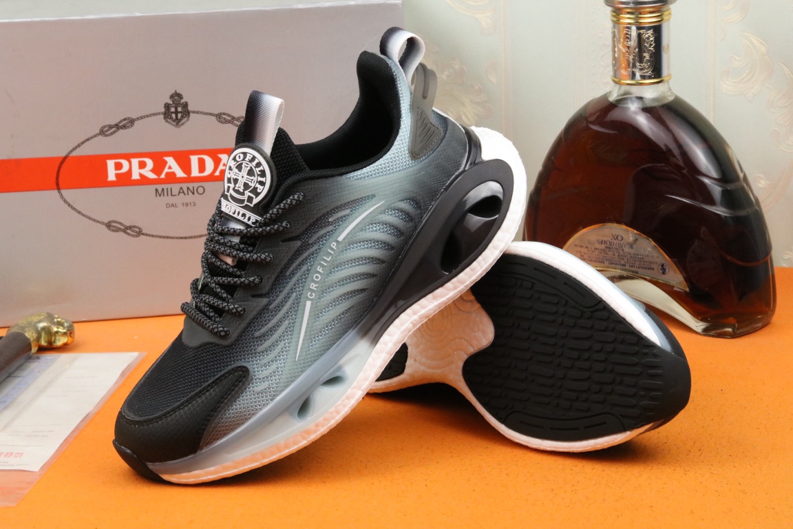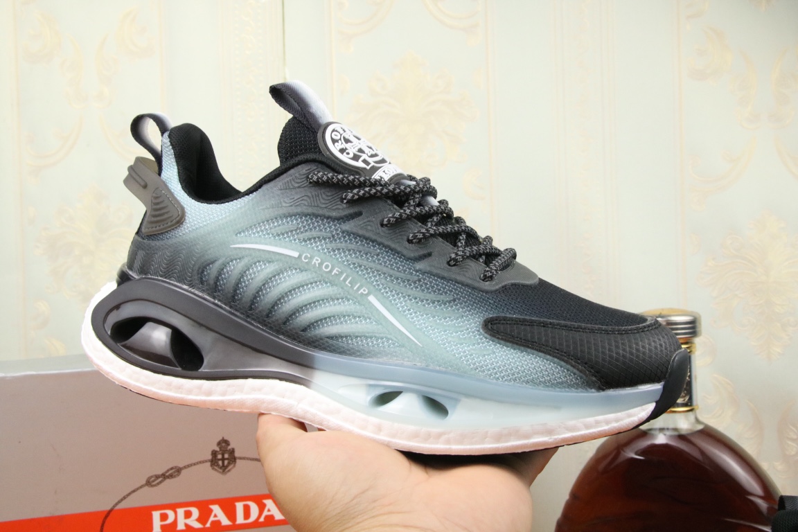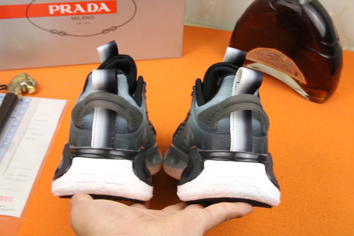 I5 高品质PRADA普拉达上市著名奢侈品牌,专柜同步更新,意大利男鞋时尚杂志季刊封面主推款鞋面采用意大利进口头层牛皮拼接透气网布制作,舒适透气内里。原版二次发泡气垫大底,上脚舒适有型。 细节无可挑剔。码数38-43