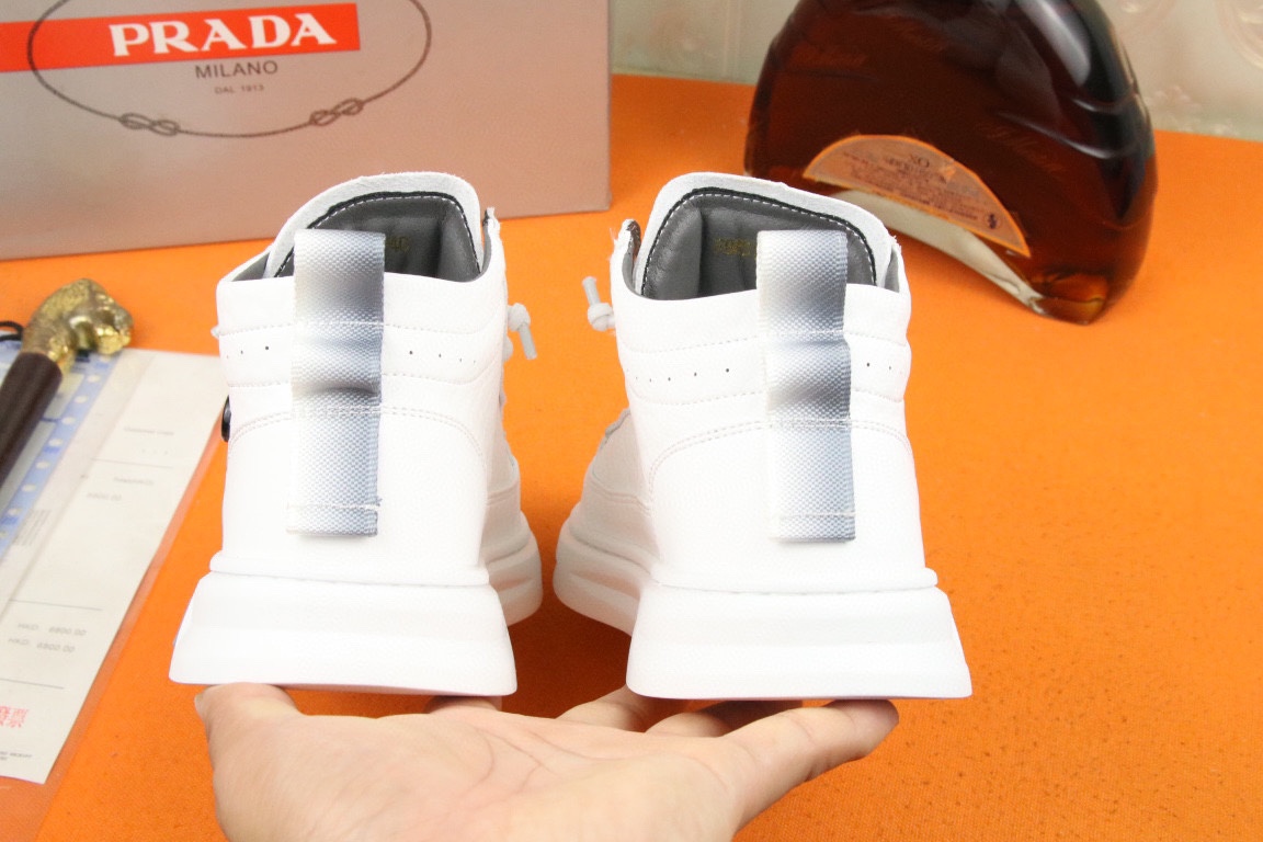 I5 高品质PRADA普拉达上市著名奢侈品牌,专柜同步更新,意大利男鞋时尚杂志季刊封面主推款鞋面采用意大利进口头层牛皮,舒适羊皮内里。原版防滑橡胶大底,上脚舒适有型。 细节无可挑剔。码数38-43