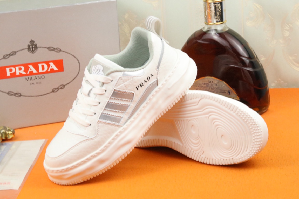 I5 高品质PRADA普拉达上市著名奢侈品牌,专柜同步更新,意大利男鞋时尚杂志季刊封面主推款鞋面采用意大利进口小牛皮,透气网布内里。原版防滑轻质发泡大底,上脚舒适有型。 细节无可挑剔。码数38-43