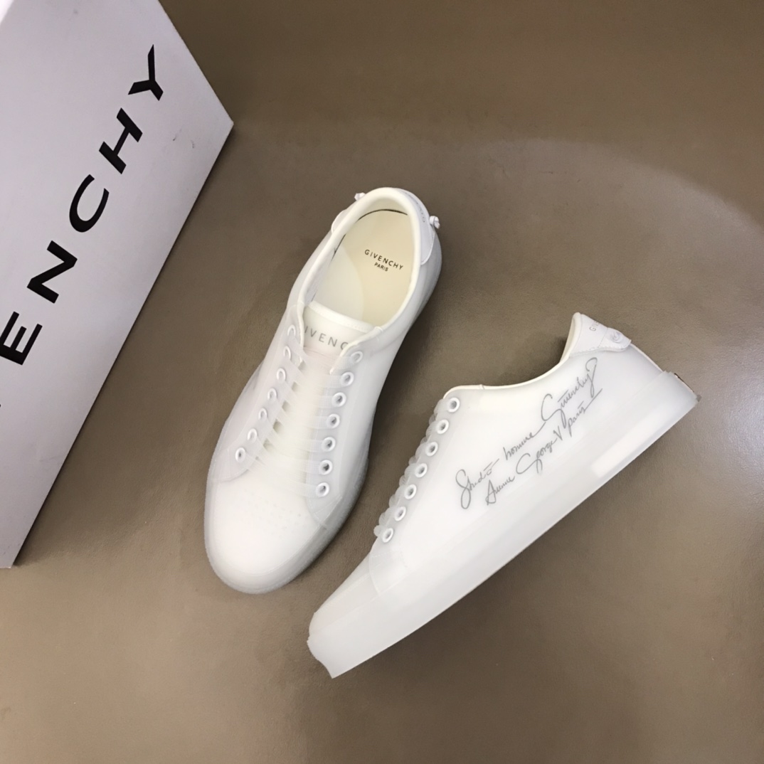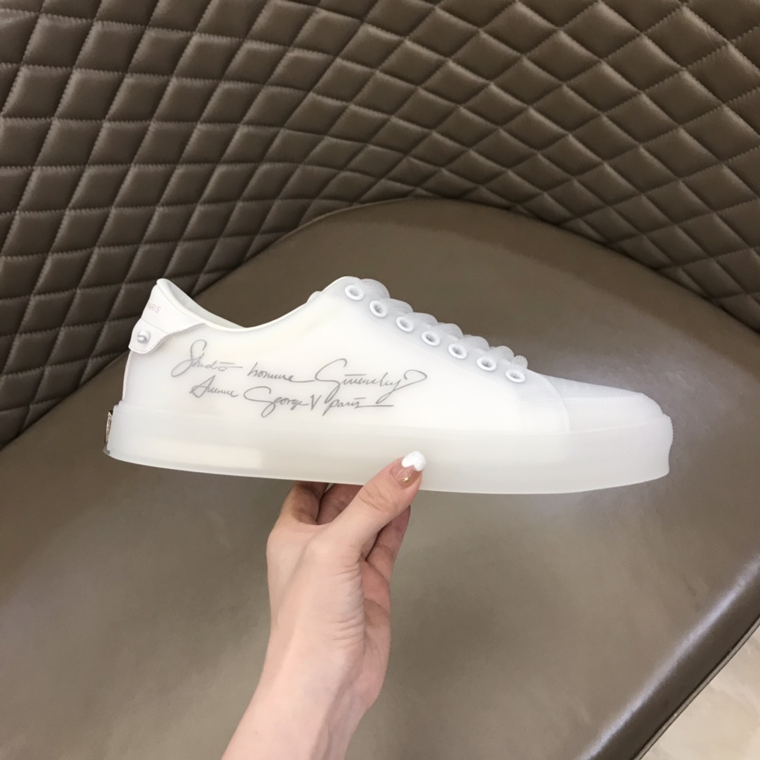 I5 Gv~ySpectre白色印花透明PVC低帮运动鞋,透过透明侧板可见GIVENCHY PARIS标志,饰有白色牛皮镶饰。头层牛皮垫脚透气吸汗,原版大底上脚轻盈舒适Size:38-44