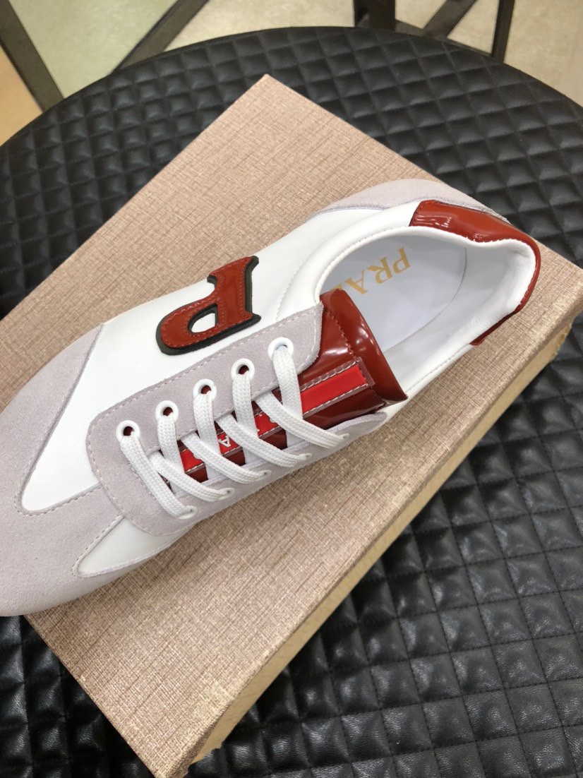 I5 PRADA普拉达男鞋,休闲鞋,正规鞋厂出品,。它的作品结合了来自意大利的万种风情,非常有活力和创意,总给人强烈的视觉冲击专柜同步,做工可与专柜较量。鞋面牛皮,羊皮里,原厂大底、按原版调制的楦头不管上脚还是摆放都相当有吸引力,绝对百搭自留款〰〰。码数38~44