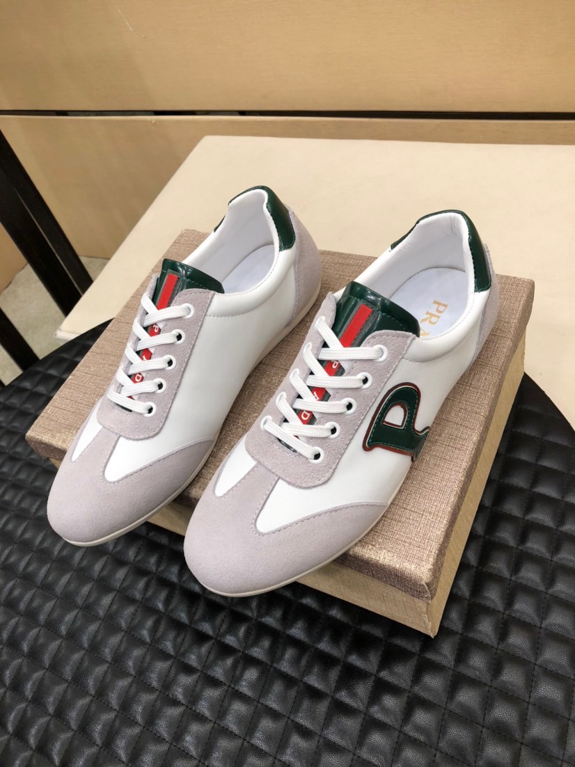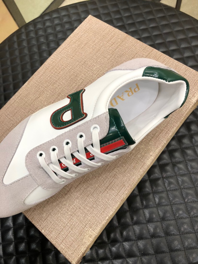 I5 .PRADA普拉达男鞋,休闲鞋,正规鞋厂出品,。它的作品结合了来自意大利的万种风情,非常有活力和创意,总给人强烈的视觉冲击专柜同步,做工可与专柜较量。鞋面牛皮,羊皮里,原厂大底、按原版调制的楦头不管上脚还是摆放都相当有吸引力,绝对百搭自留款〰〰。