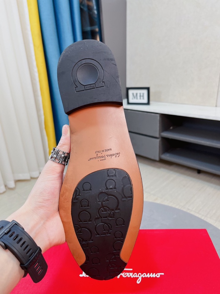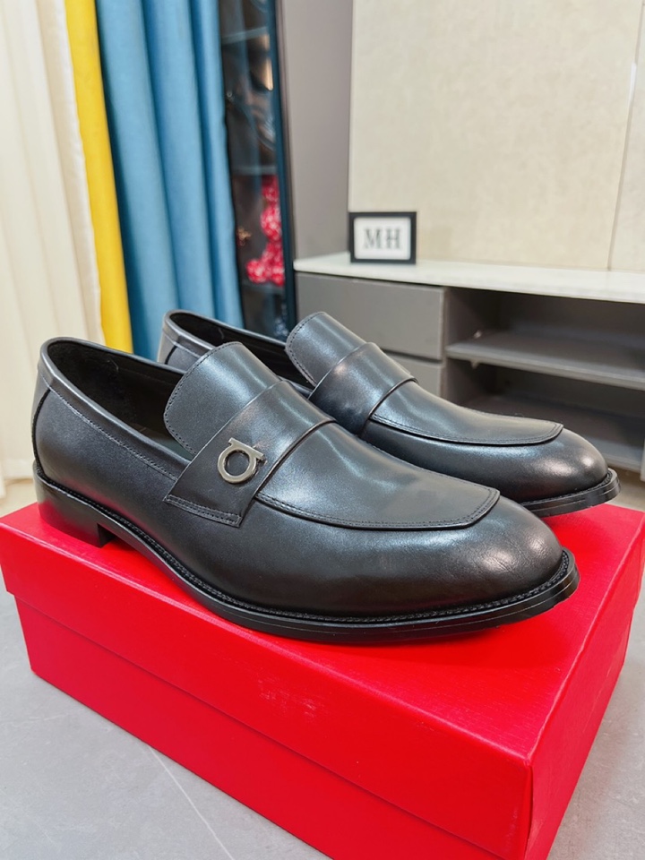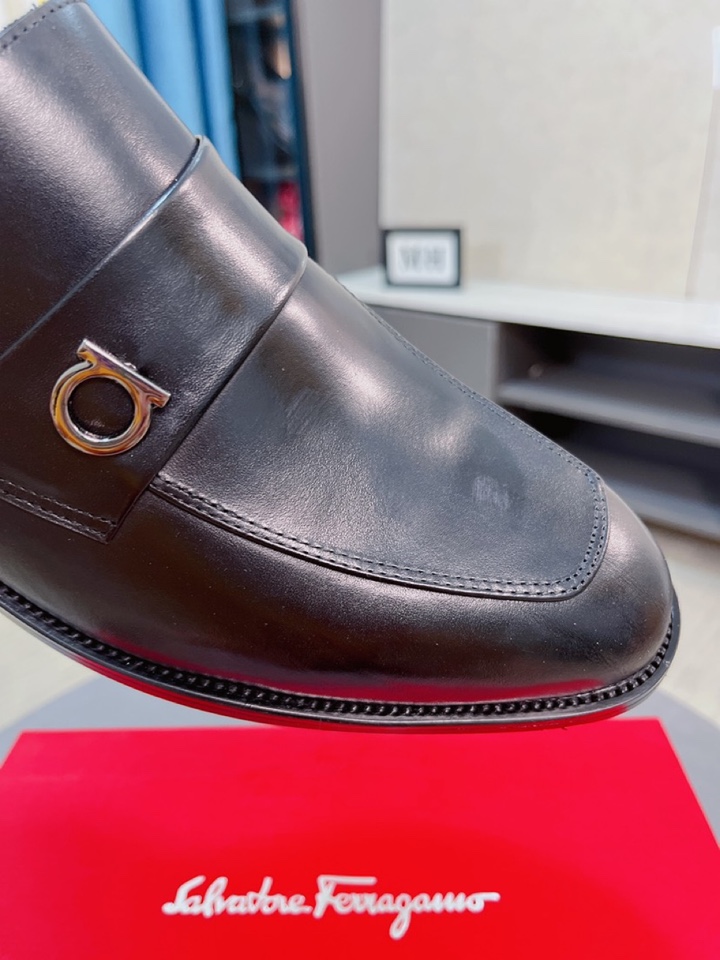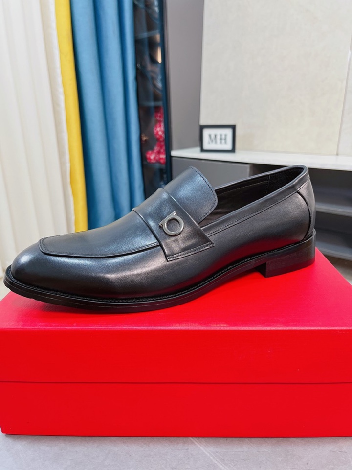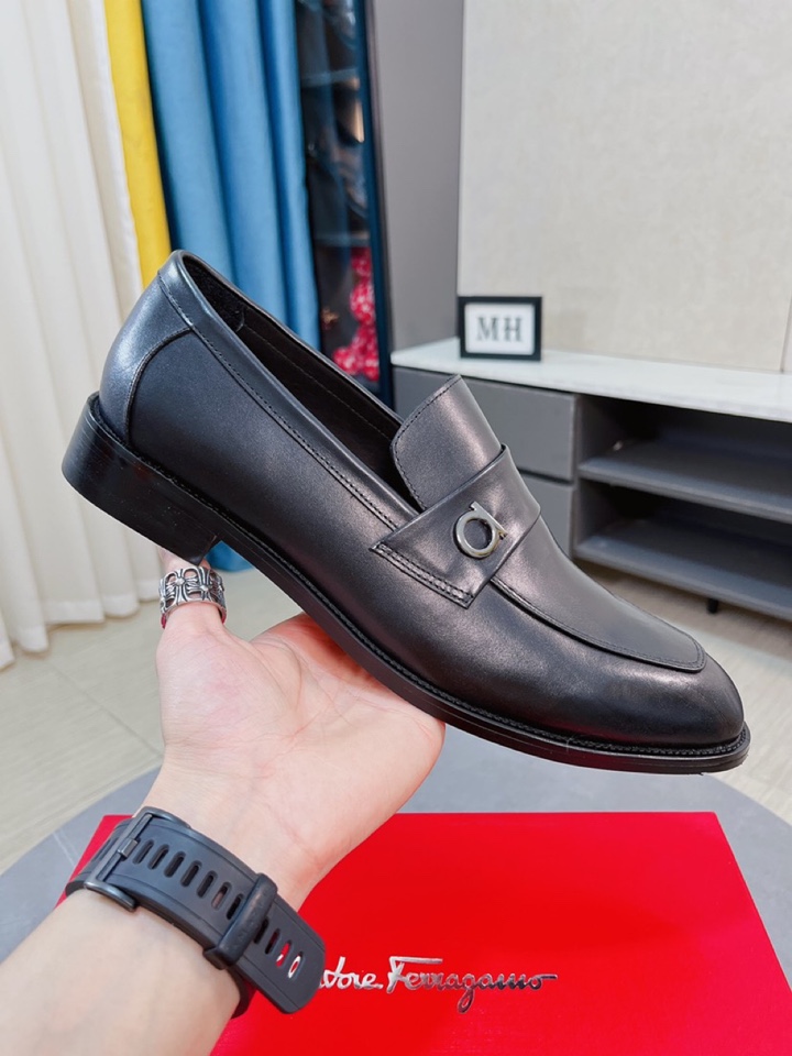 J0 全牛里Ferragamo菲拉格慕最新男士套脚商务皮鞋,头层采用意大利进口荔枝纹软牛皮奢华牛皮内里,带有LOGO的激光大底,柔软舒适高端大气,高品味男士首选38-44