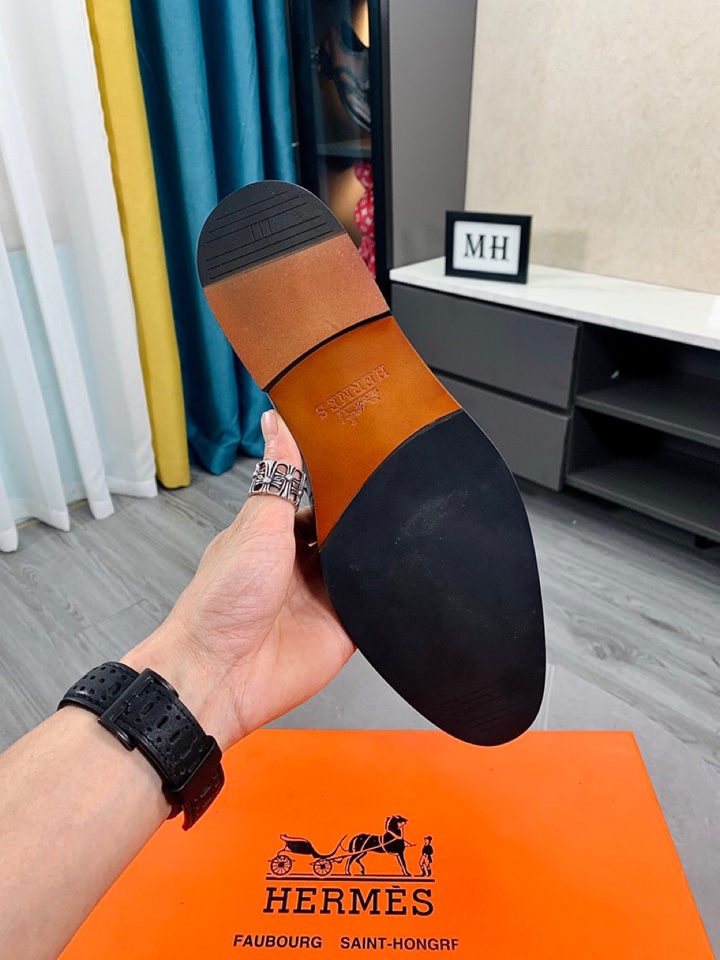 J0 牛里 Hermes 爱马仕 商务皮鞋,原厂配置、原版进口开边珠鸵鸟纹+奢华五金logo+全进口原版定制牛皮内里,鞋底:橡胶耐磨大底高难度工艺,原厂跟单货,高品质