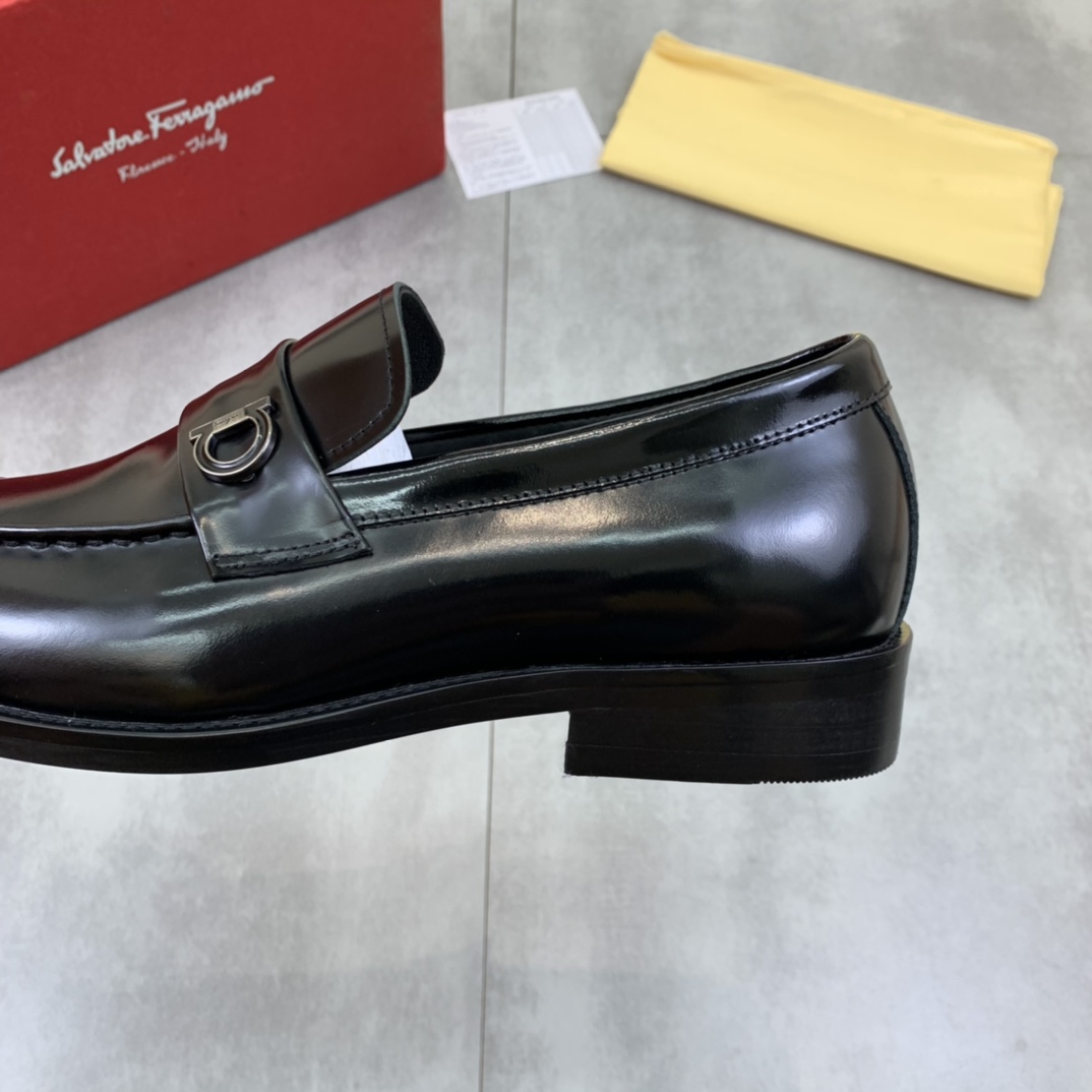 J0 菲拉格慕 高端商务正装皮鞋风格华贵典雅,实用性和款式并重,专业专注细节与品质,专柜原版1:1超精准复刻 材质:鞋面采用进口原版开边珠牛皮进口意大利牛皮内里。原版防滑耐磨大底 码数:38–44 黑色 选