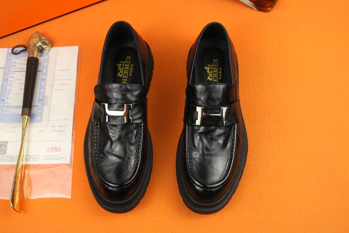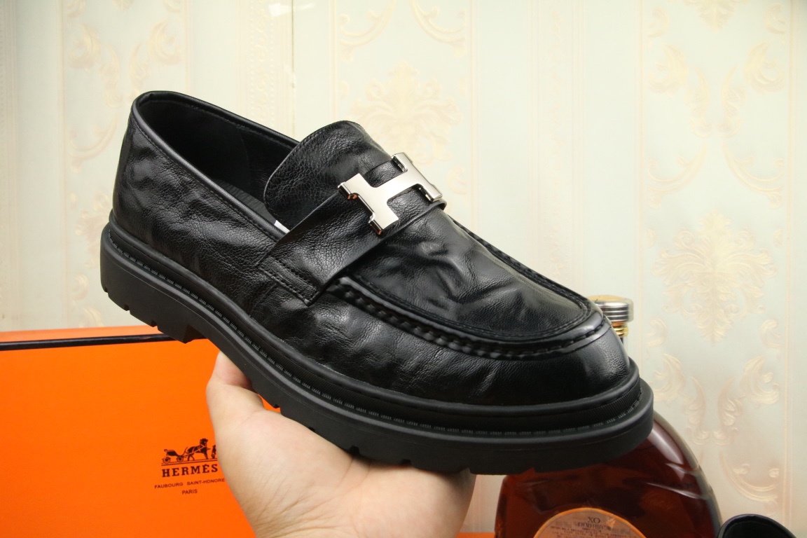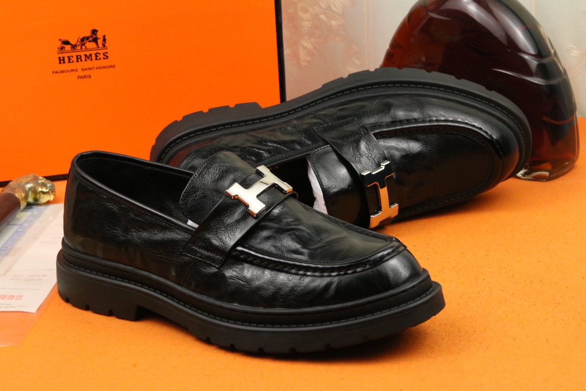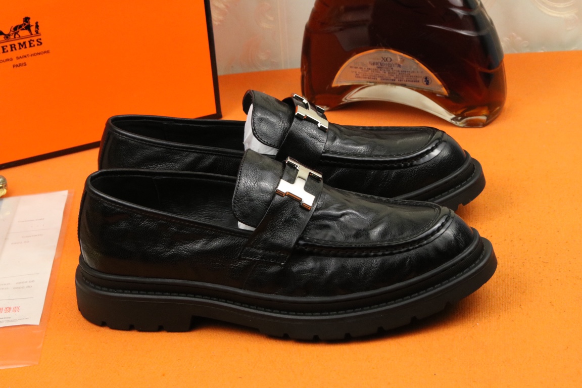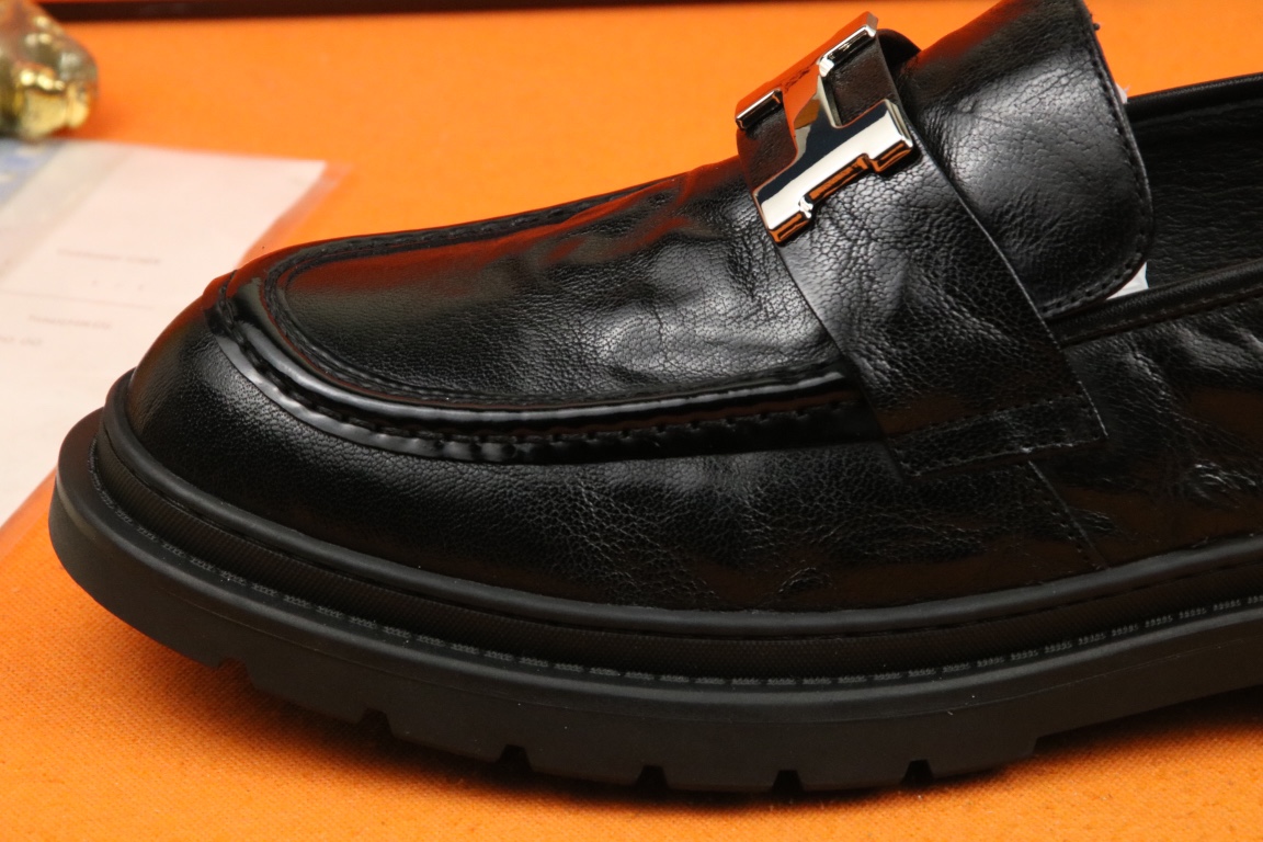 J0 高品质 Hermes 爱马仕 官网最新时尚正装皮鞋,顶级原单货,独家首发,精心打造,潮流时尚,绅士格调,鞋面采用进口头层牛皮,透气猪皮里,橡胶防滑大底, 时尚舒适。码数38-44