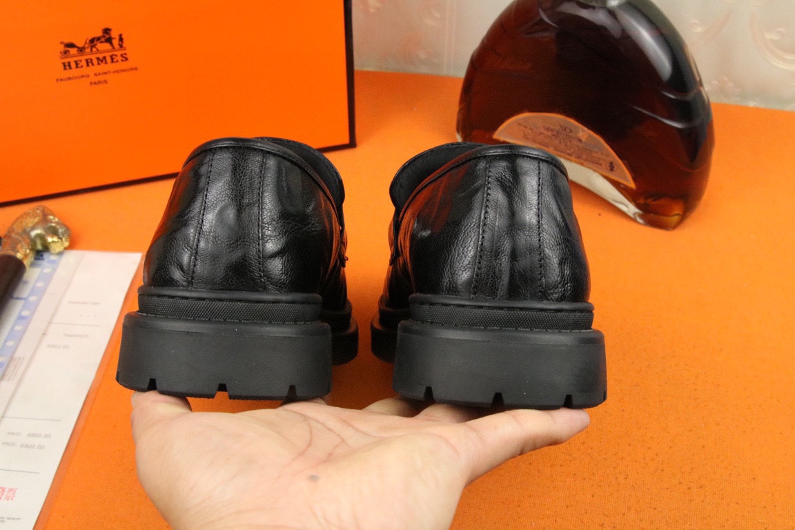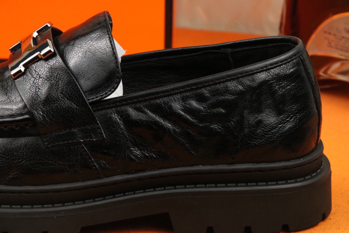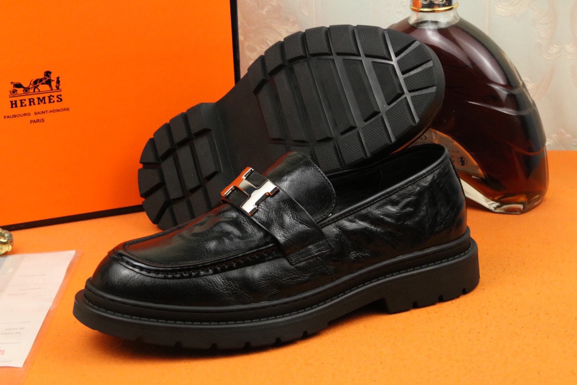 J0 高品质 Hermes 爱马仕 官网最新时尚正装皮鞋,顶级原单货,独家首发,精心打造,潮流时尚,绅士格调,鞋面采用进口头层牛皮,透气猪皮里,橡胶防滑大底, 时尚舒适。码数38-44