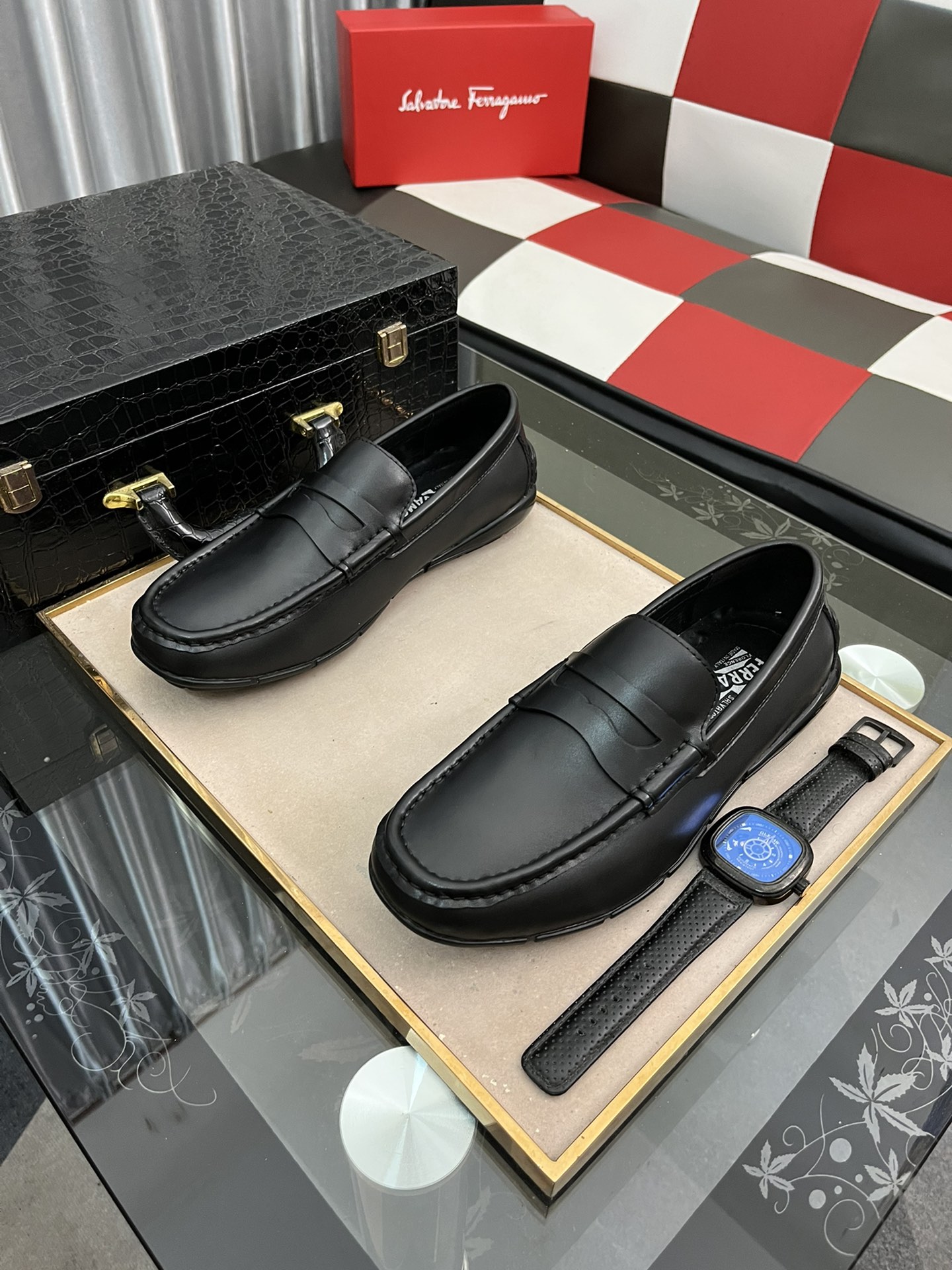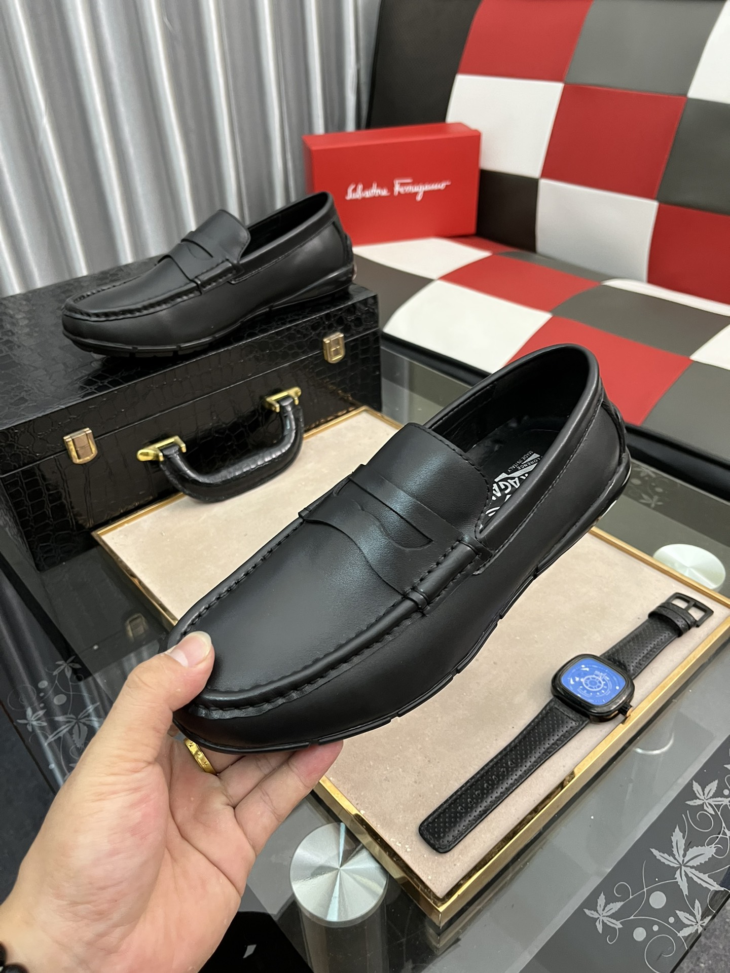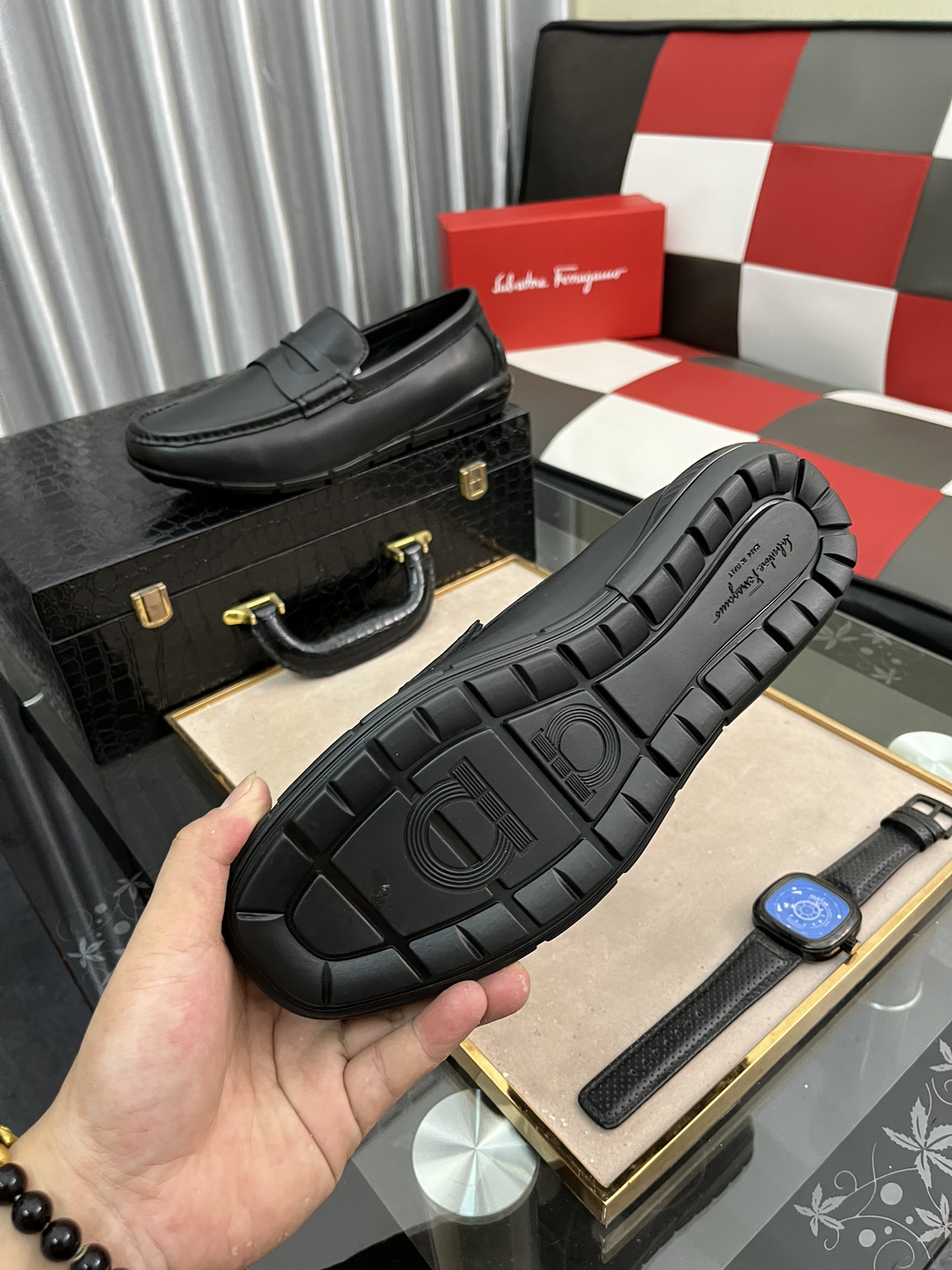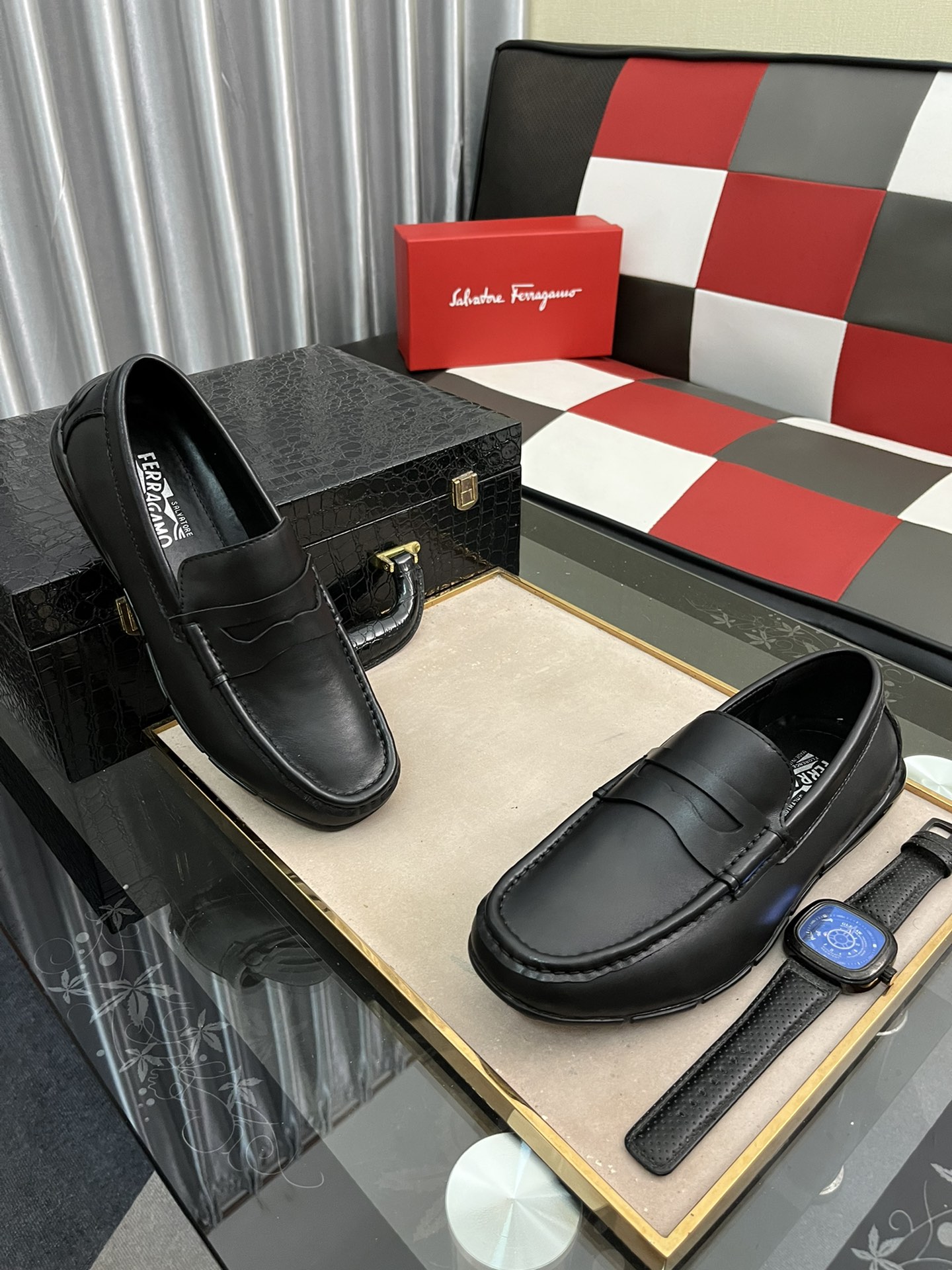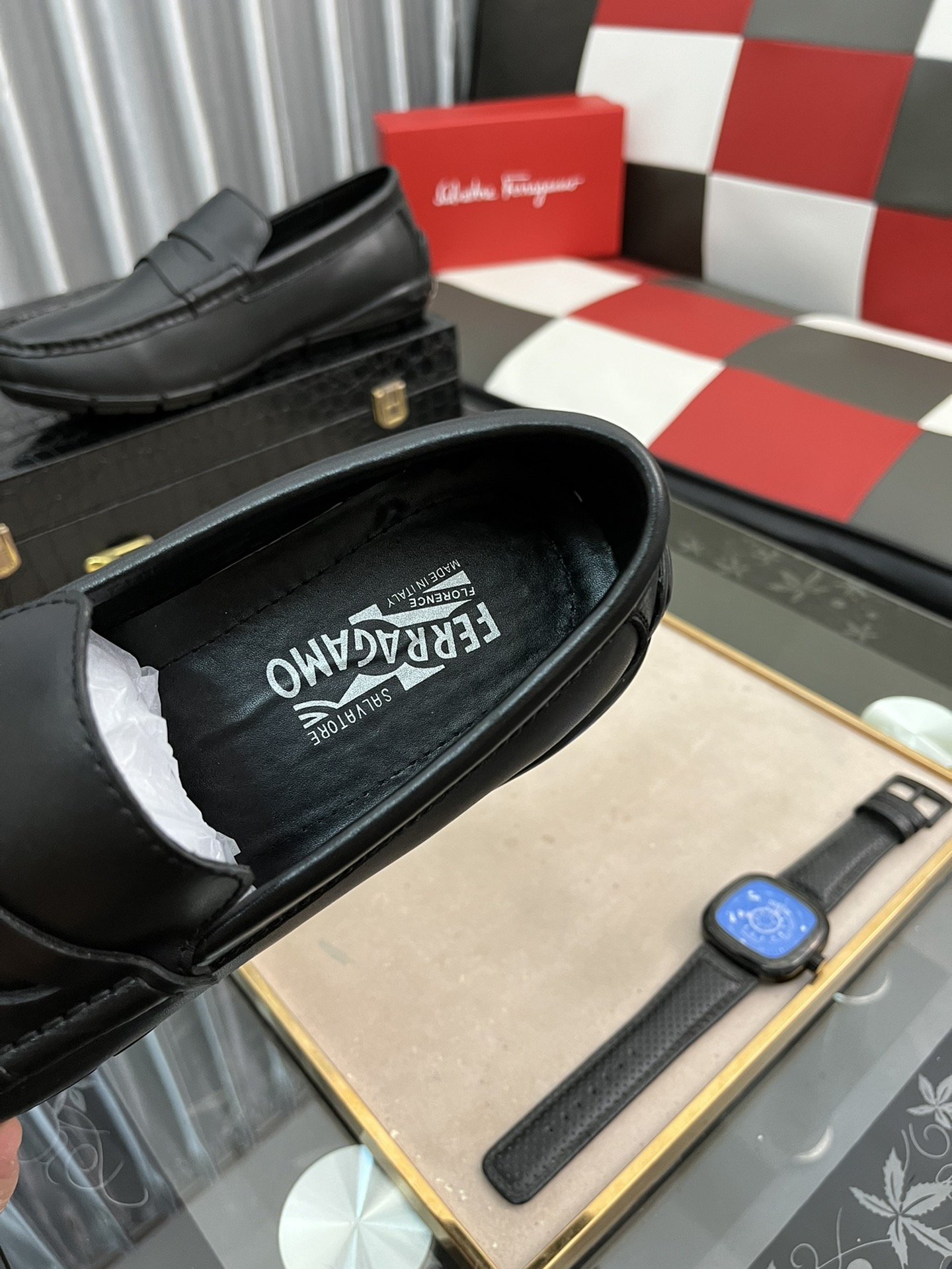 J0 Ferragamo菲拉格慕男士皮鞋,豆豆鞋每一位成功男士的身份衬托,上脚大气稳重高端定制专柜原版金属扣海外独家购入进口牛皮压花柔软舒适的真皮内里垫脚 不管风吹雨打鞋楦不变,经得起时间的验证,值得推荐,
