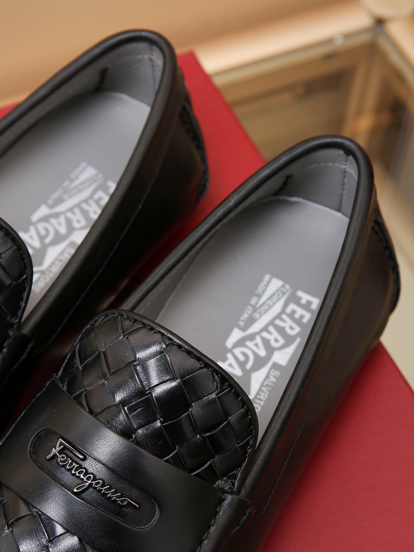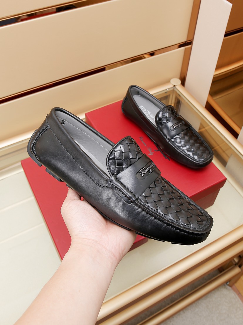 J0 Ferragamo菲拉格慕 官网1比1开模,经典爆款豆豆鞋,欧美大师设计简洁高档大气,专柜品质值得信赖,面料采用编织牛皮牛皮内里做工精细,原板大底上脚舒适百搭,潮男专属定制,驾车系列之首。