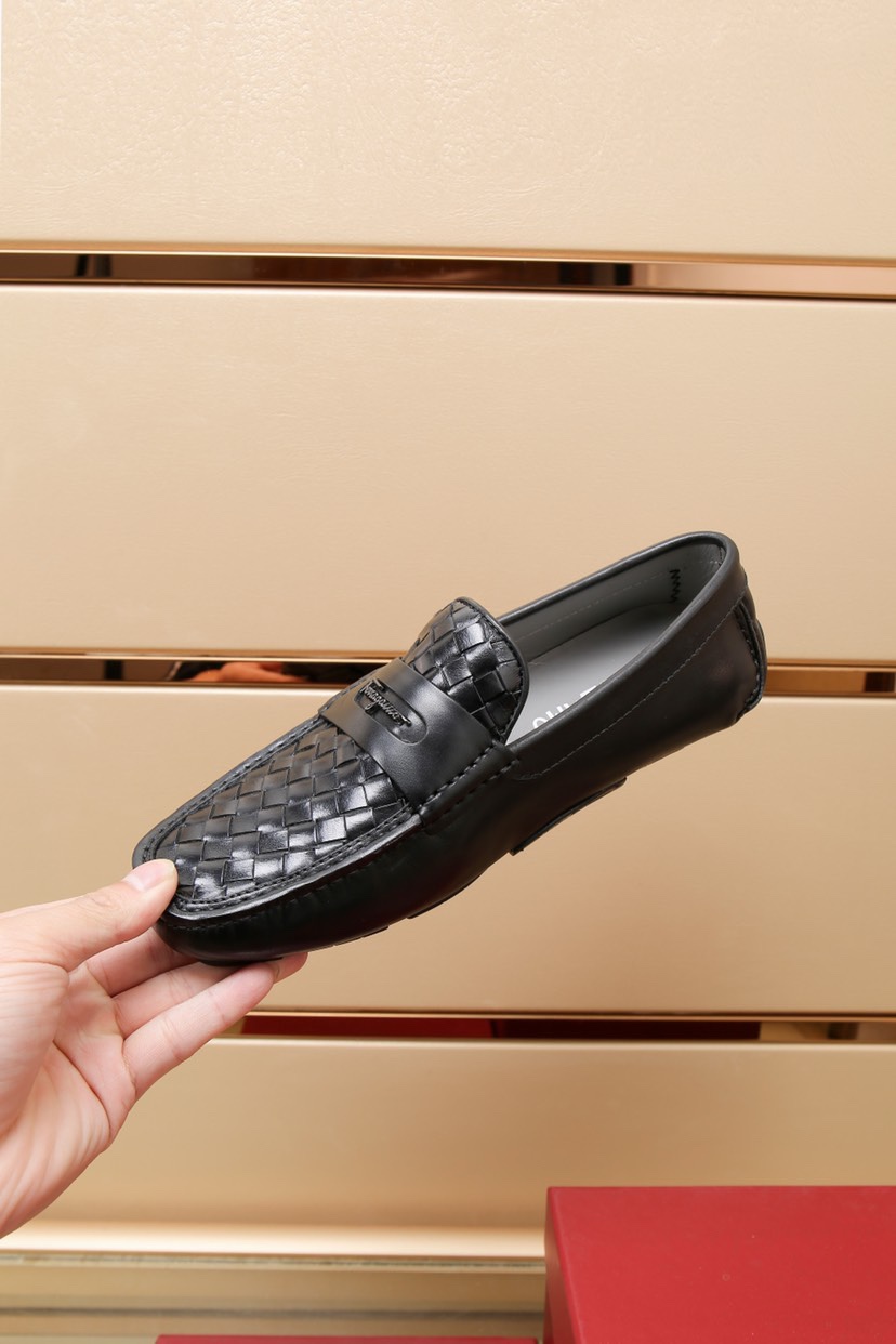 J0 Ferragamo菲拉格慕 官网1比1开模,经典爆款豆豆鞋,欧美大师设计简洁高档大气,专柜品质值得信赖,面料采用编织牛皮牛皮内里做工精细,原板大底上脚舒适百搭,潮男专属定制,驾车系列之首。码数:38-44