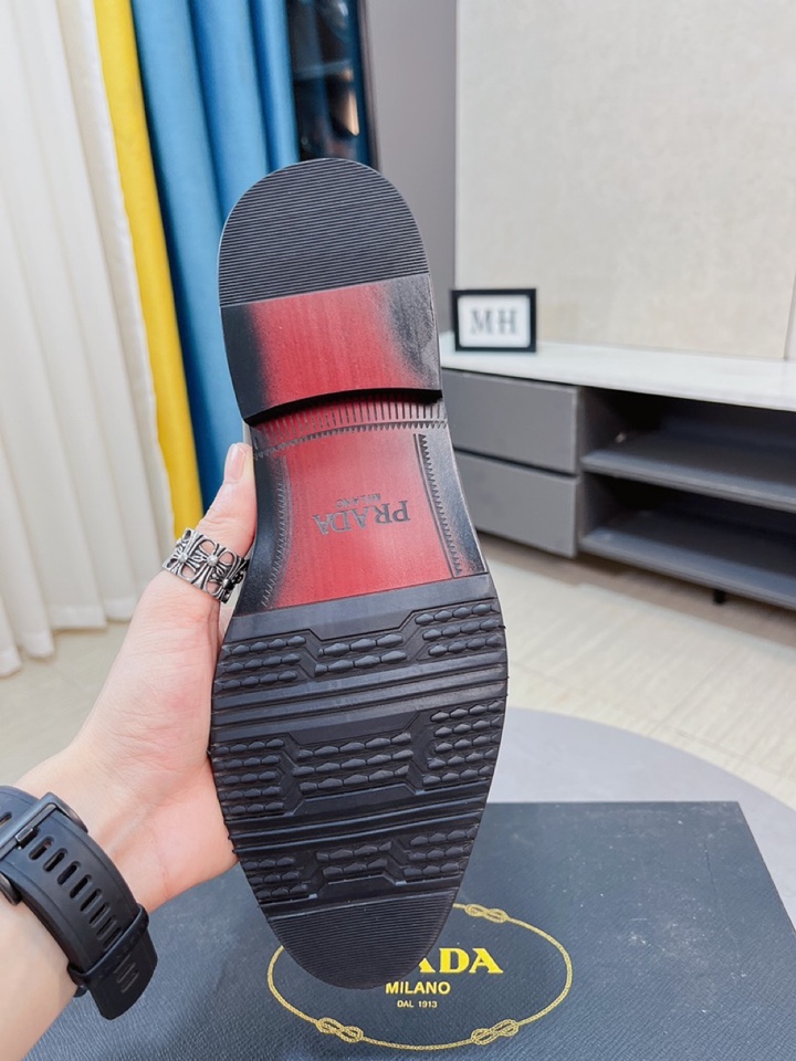 J0 PRADA 普拉达皮鞋顶级代购 男士专柜同步发售,意大利进口原版定制开边珠擦色牛皮面、全进口水染透气牛皮里垫、原厂特供原版成型底超级舒适,