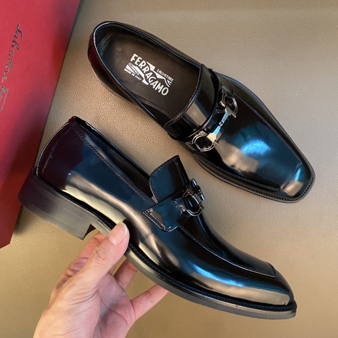 J5 顶级货 2022菲拉格慕.Ferragamo 香港专柜再现传奇.头层牛皮压纹 搭配鞋头时尚设计无限创意.经典中带有时尚的元素.商务风显得更突出 商务系列皮鞋设计 适合出现各种场合 司机驾车 懒人套脚乐福款 正装鞋 真木大底 .男鞋正码:38-44 45定制 黑色 可选