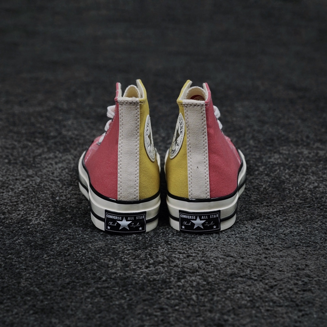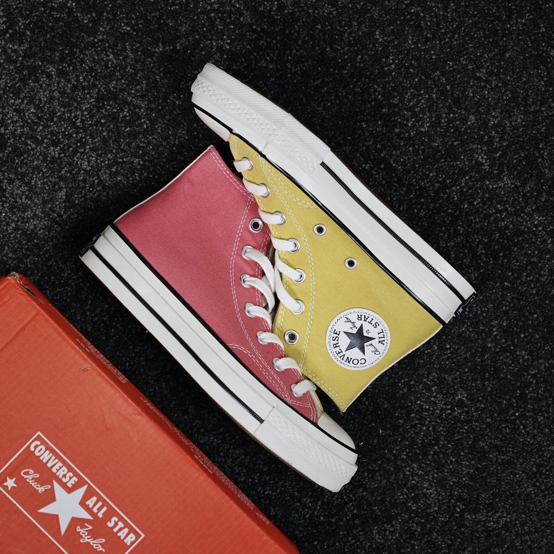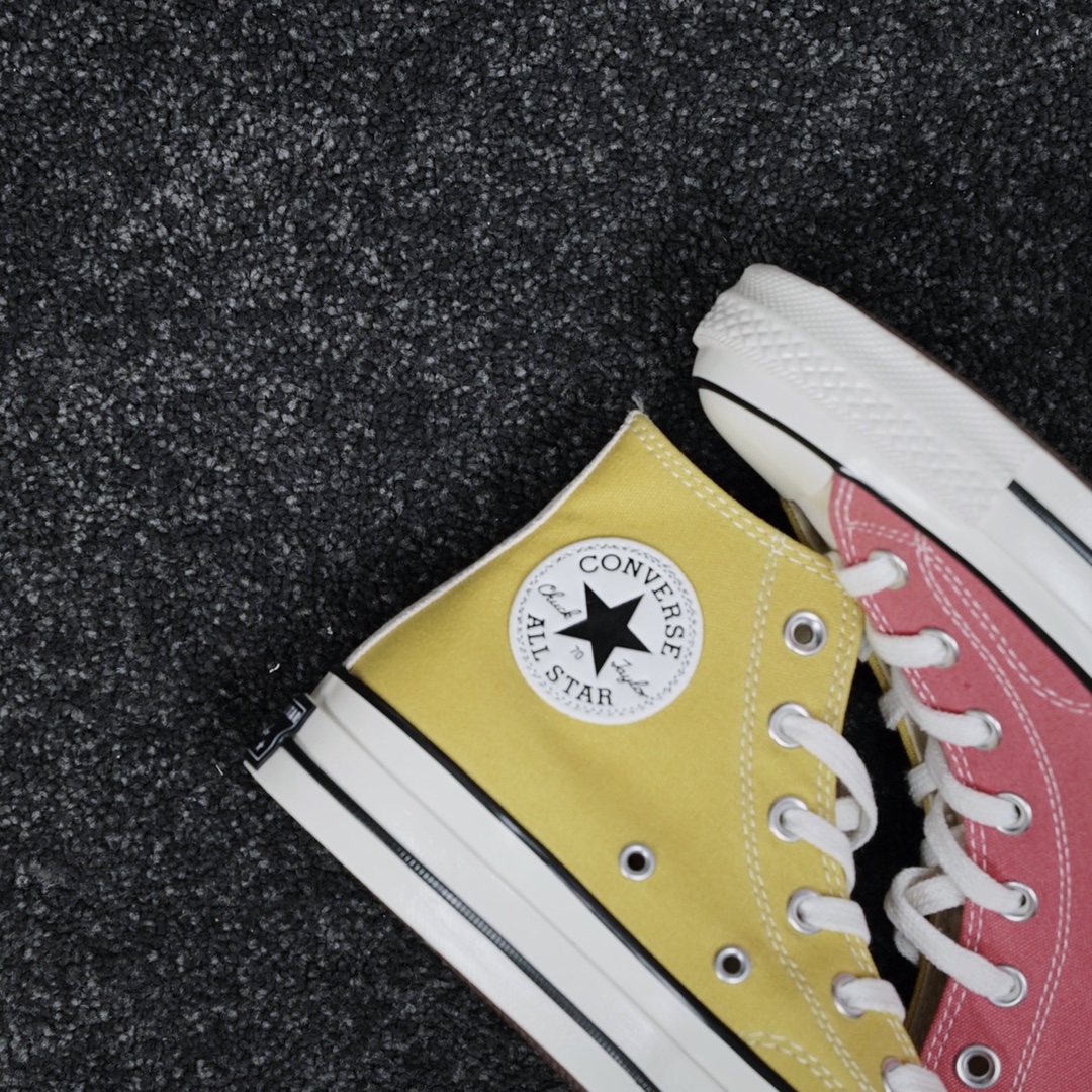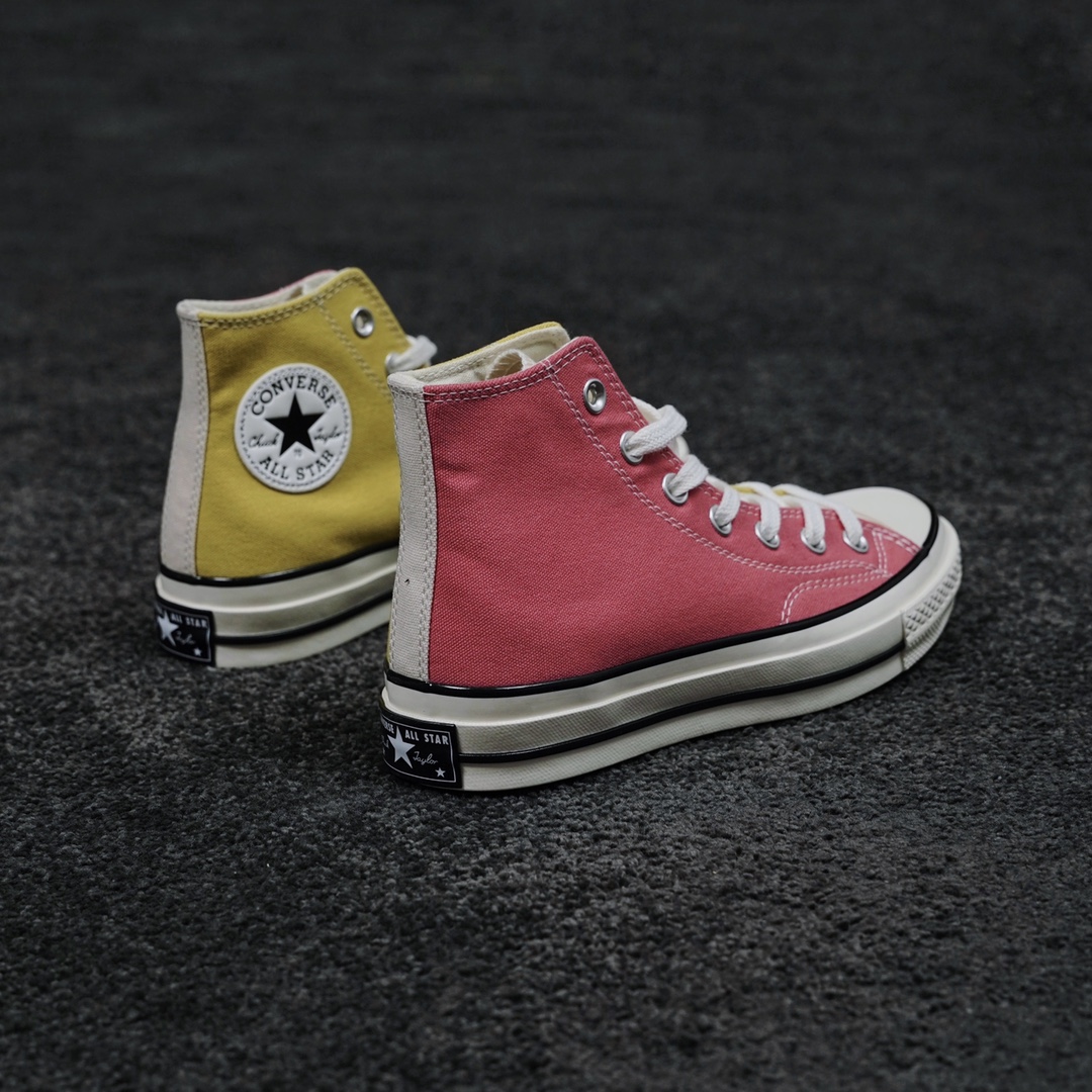 G0 匡威拼色冰淇淋 清凉夏日Converse Chuck 70s 红黄拼色经典的70S低帮鞋型蓝本,后跟星标贴片鞋身内外側采用拼色设计,外側鞋身蜜桃红,內侧鞋身奶黄色,鞋舌纯白色,左侧鞋舌内里印有可持续利用环保星形标识内外侧都是浅色调设计,对这种清新的配色真是毫无抵抗力