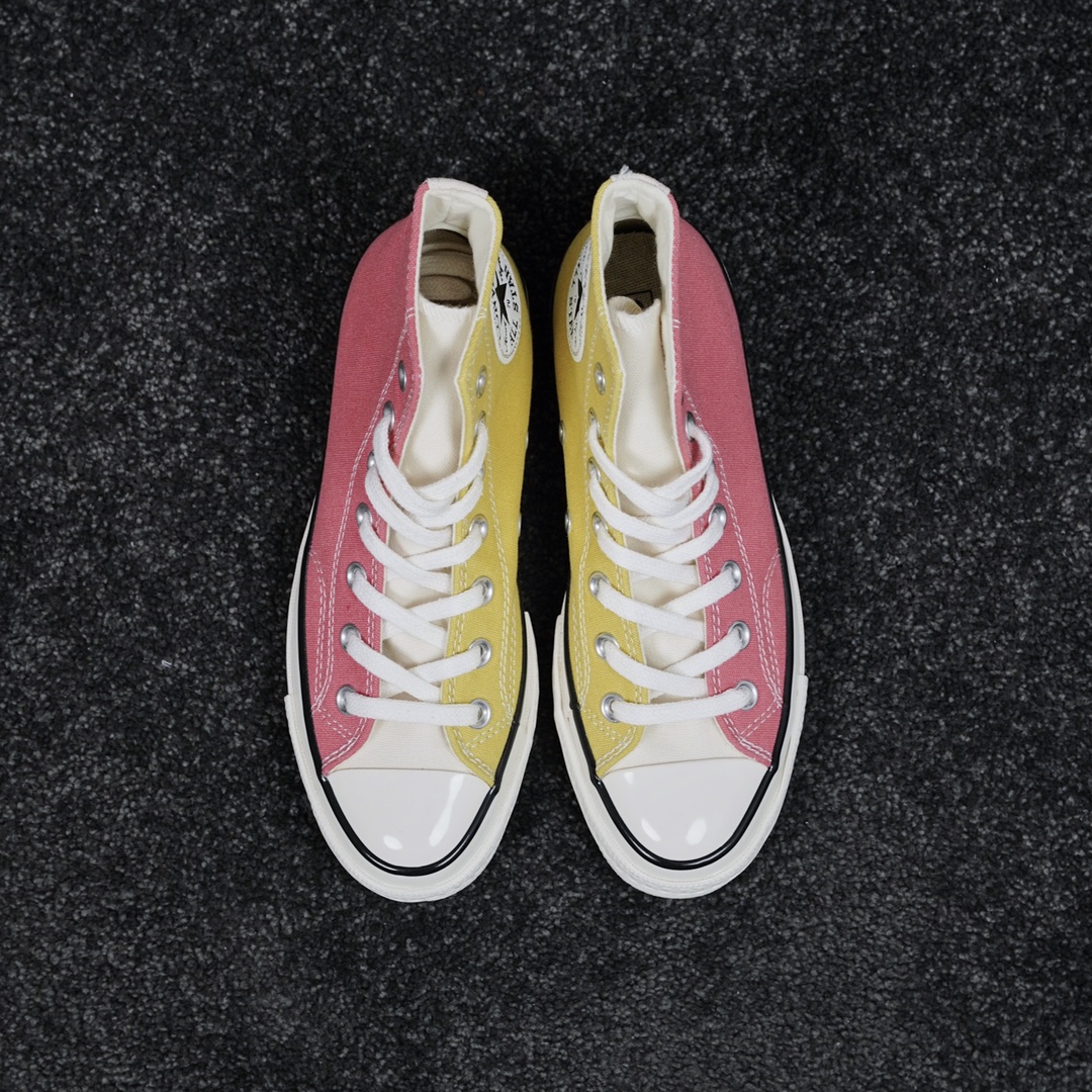 G0 匡威拼色冰淇淋 清凉夏日Converse Chuck 70s 红黄拼色经典的70S低帮鞋型蓝本,后跟星标贴片鞋身内外側采用拼色设计,外側鞋身蜜桃红,內侧鞋身奶黄色,鞋舌纯白色,左侧鞋舌内里印有可持续利用环保星形标识内外侧都是浅色调设计,对这种清新的配色真是毫无抵抗力尺码:35-39(36.5 37.5)