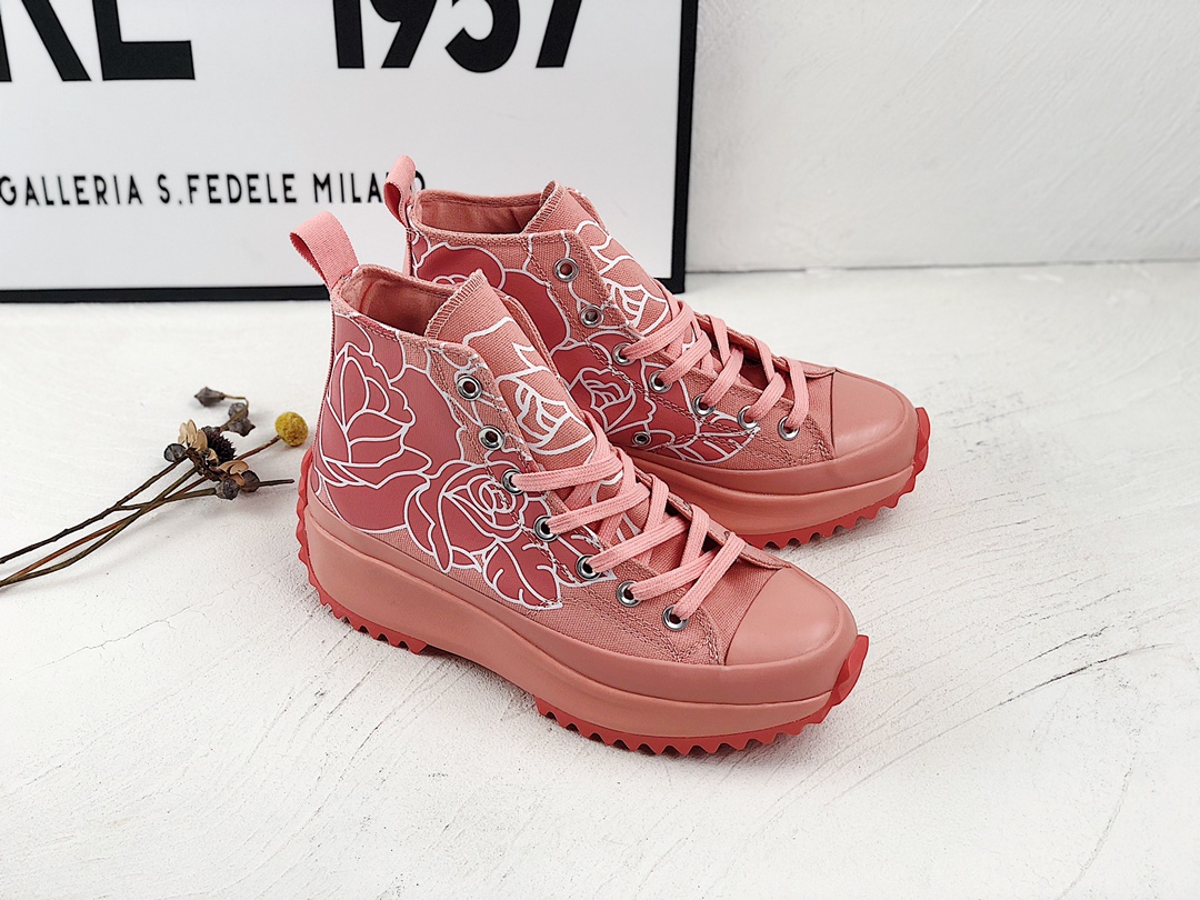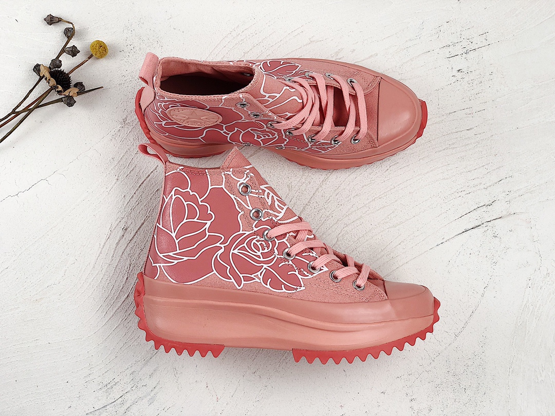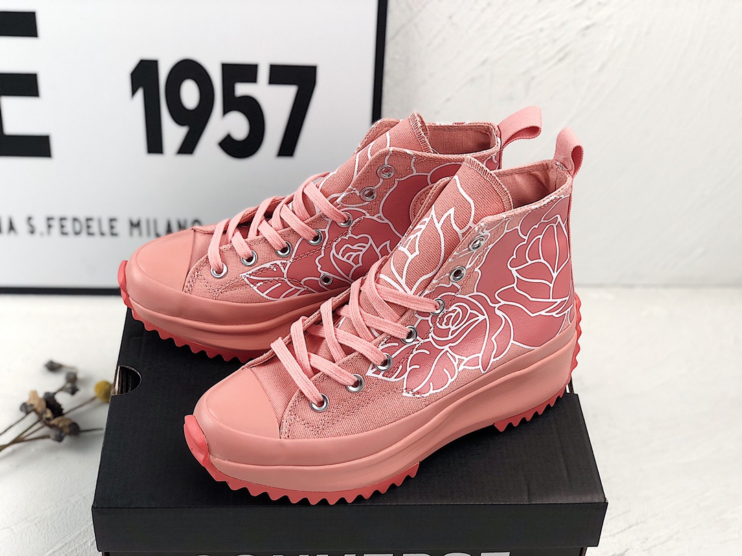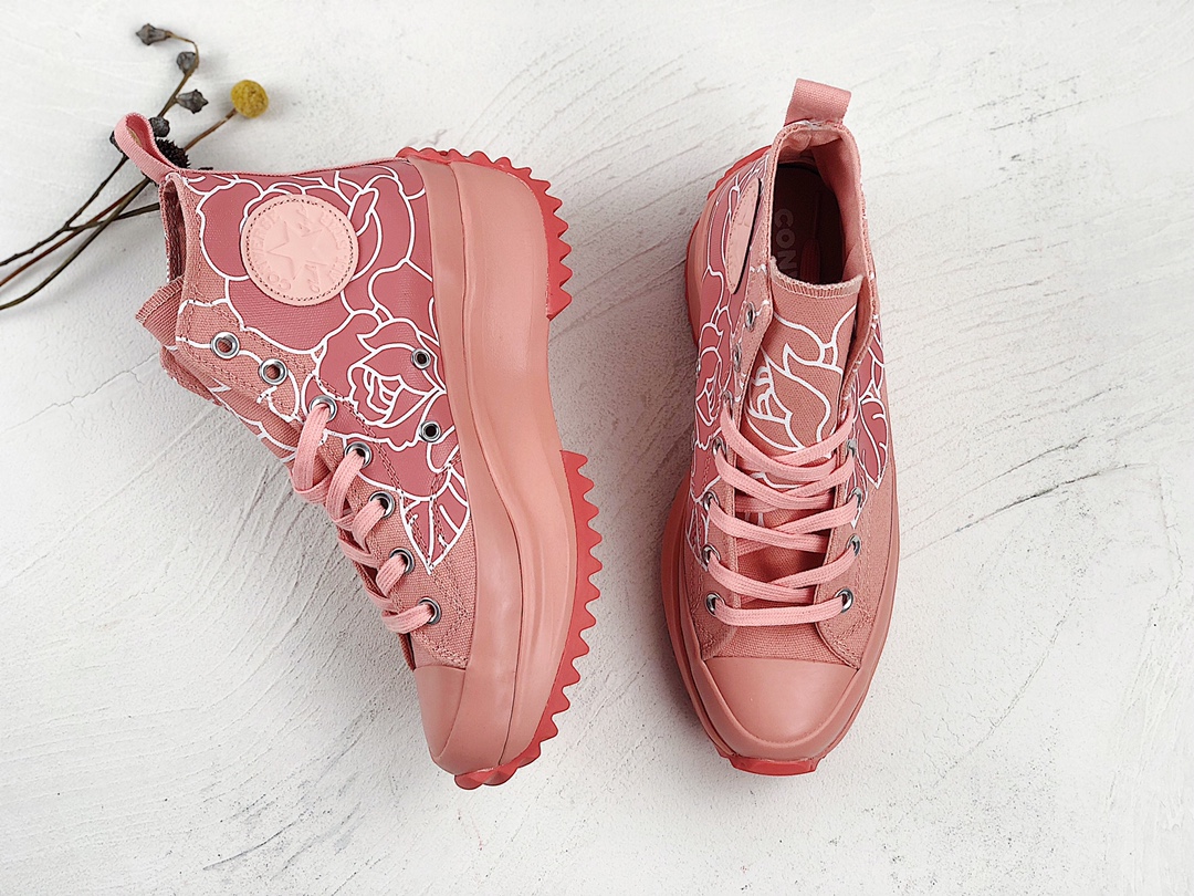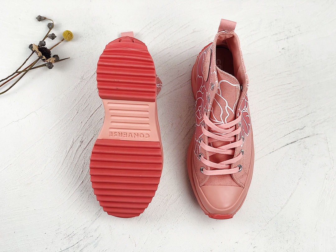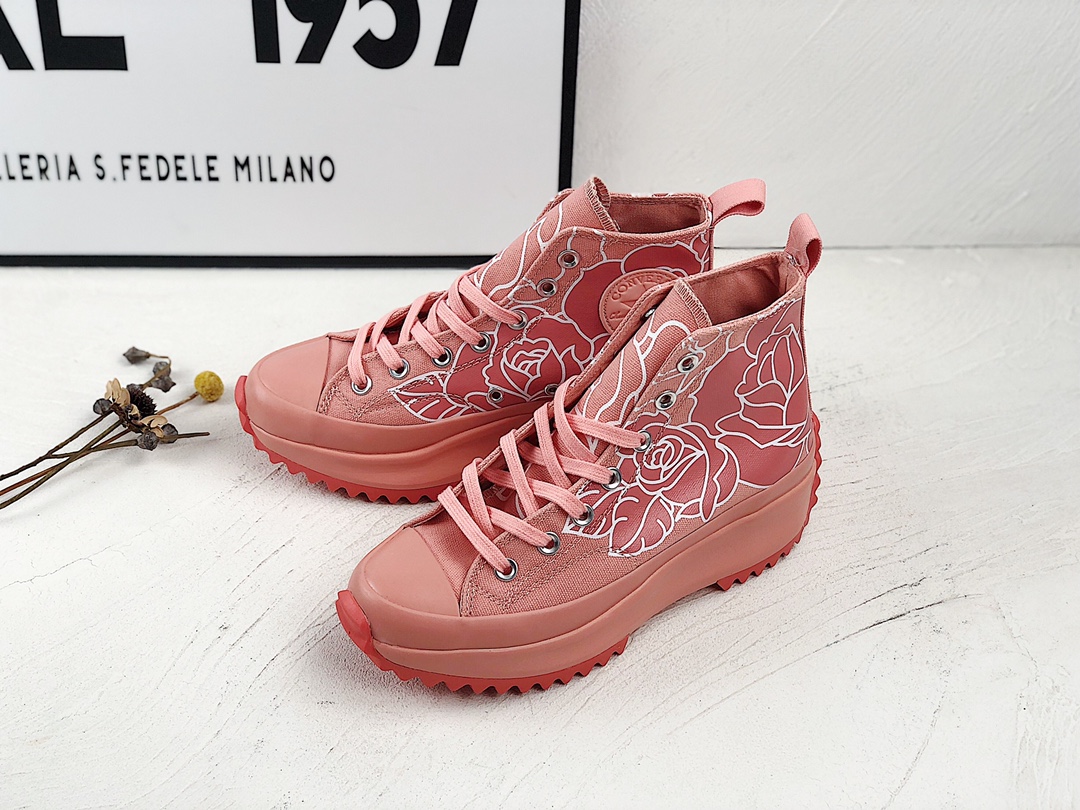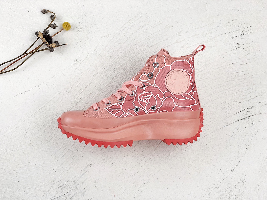 G0 匡威新款Conve rse Run Star Hike Platform 粉红色增高帆布鞋灵感来自娜塔莎云的热情完善她的手艺,脚跟上的对比色明星定义现代平台风格,鞋带帆布保持它的经典。玫瑰细节上的上部增加了其独特的外观