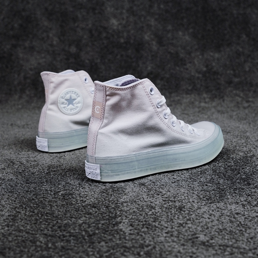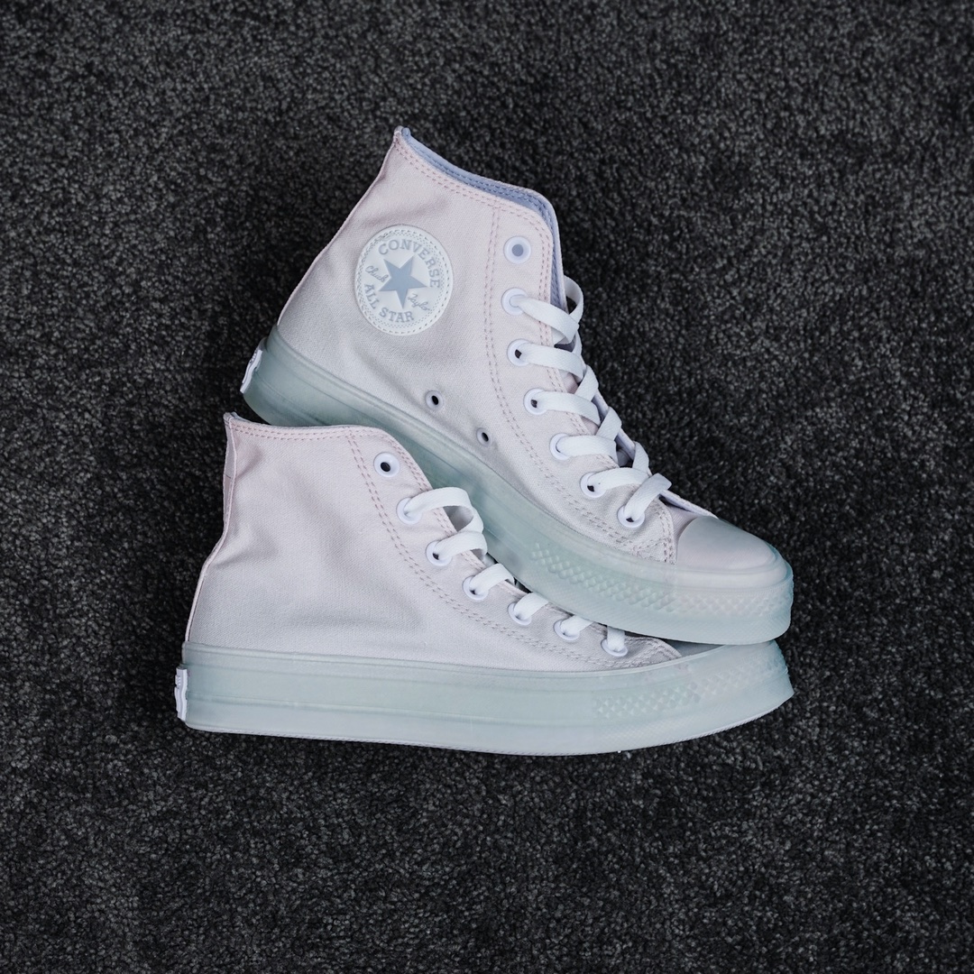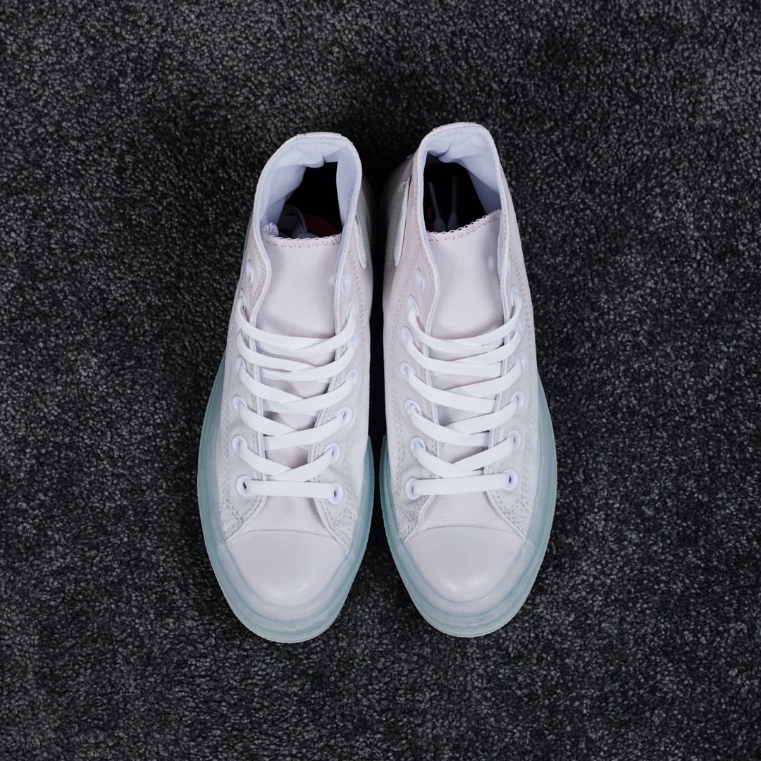 G0 匡威最新CX系列果冻鞋渐变粉官方正确PU发泡鞋垫 软蓝底绝了 匡威这双新品直接封神太仙了渐变粉 太太太好看 超梦幻的配色色彩柔和,呈现视觉冲击力,半透明的内围条,清新百搭,极具舒适感CX独特的发泡PU鞋垫搭配软蓝底非常柔软,脚感超级无敌好走超级软官方