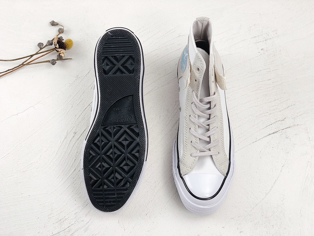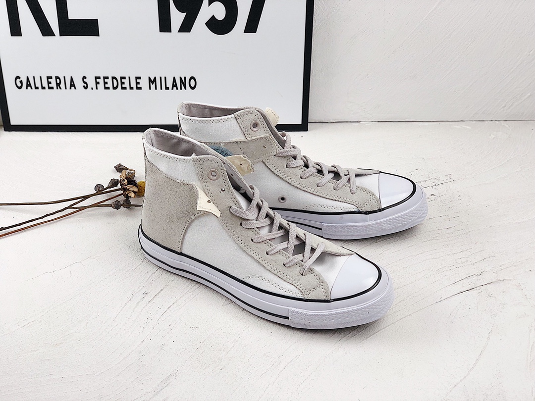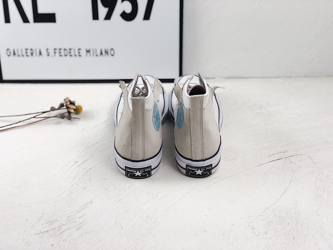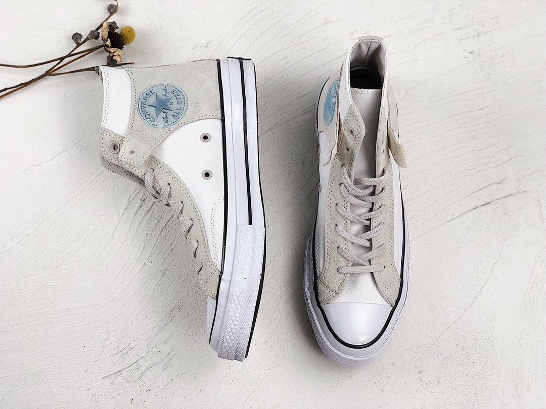 G0 匡威CONVERSE Chuck 70 米白鹿皮拼接高帮 米白灰 匡威全新系列鹿皮拼接 整体以米白灰为主色调给你一种耐看的感觉,特殊的后跟鞋身鹿皮包边 透明外标设计 搭配工装裤 细节到位 简约低调百搭官方