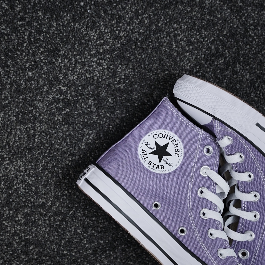 G0 如果春天有颜色的话那我希望是紫色的 为匡威 ALL STAR 春日新色打 CALL 一度热衷于70s的黑色一直想试试新的颜色 刚好一年货节一眼相中了这双2022新色烟熏紫颜色出挑的同时又极具复古感关键出门不容易撞鞋!暮光紫是真的好看,狠狠拿捏了紫色爱好者的心!一把子爱了。 这双颜色非常春天,一扫冬天的阴郁 暮光紫172685C烟熏紫A02062C