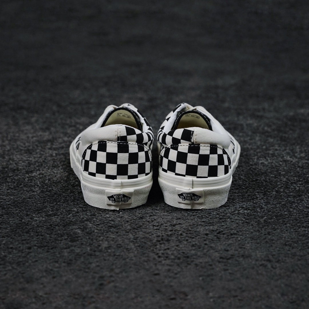 G0 官方Vans Era 拼接棋盘格 不对称撞色设计 黑白期待已久的硫化版本出货本次全新推出的Era系列 在白色鞋身上采用大面积的黑经典棋盘格元素 从左侧腰身延伸覆盖至整个鞋面 右侧鞋腰则保留纯色设计 使鞋子在不同角度都拥有独特的视觉效果