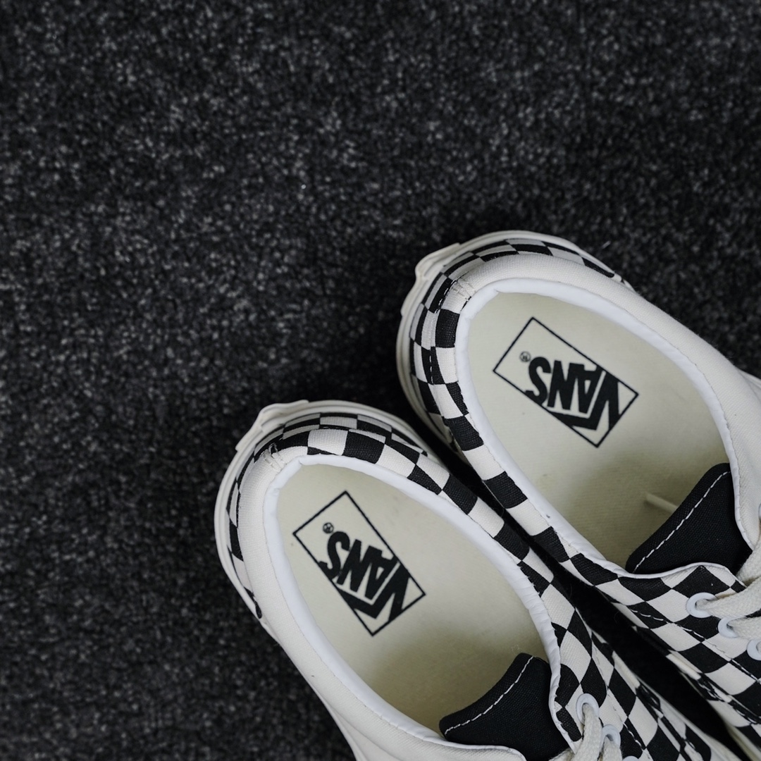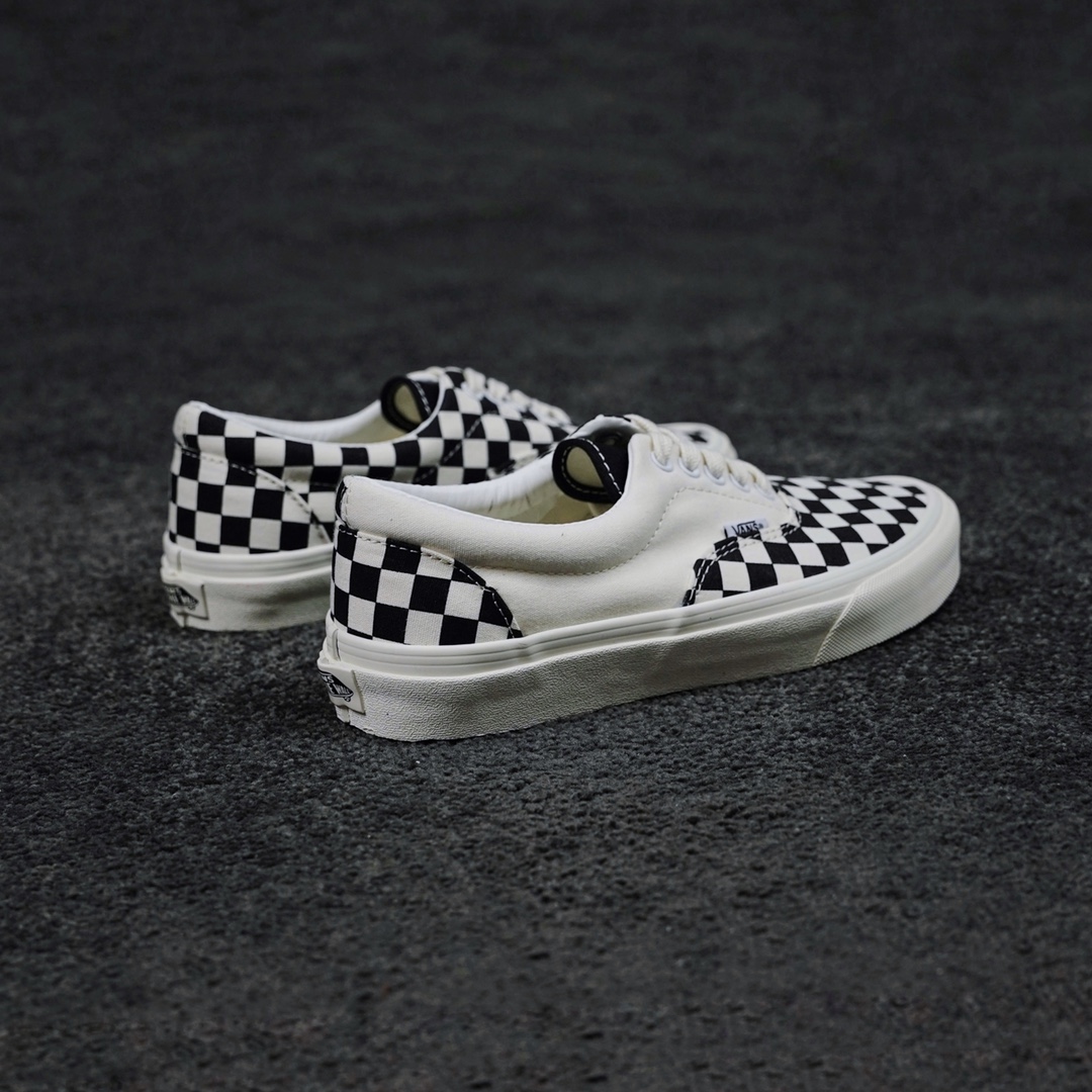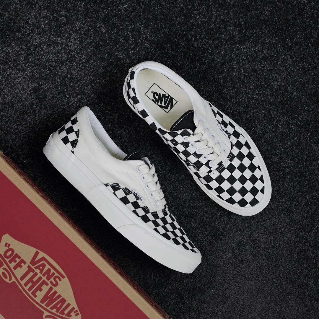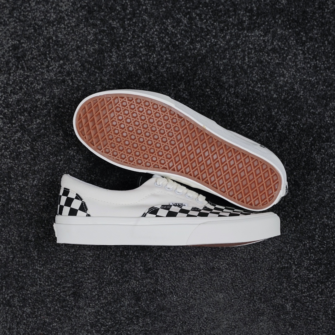 G0 官方Vans Era 拼接棋盘格 不对称撞色设计 黑白期待已久的硫化版本出货本次全新推出的Era系列 在白色鞋身上采用大面积的黑经典棋盘格元素 从左侧腰身延伸覆盖至整个鞋面 右侧鞋腰则保留纯色设计 使鞋子在不同角度都拥有独特的视觉效果 Size :35 36 36.5 37 38 38.5 39 40 40.5 41 42 42.5 43 44