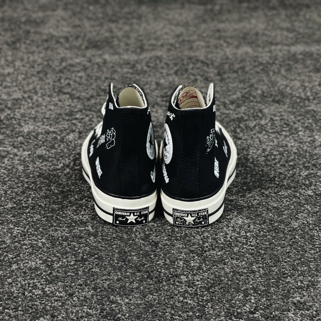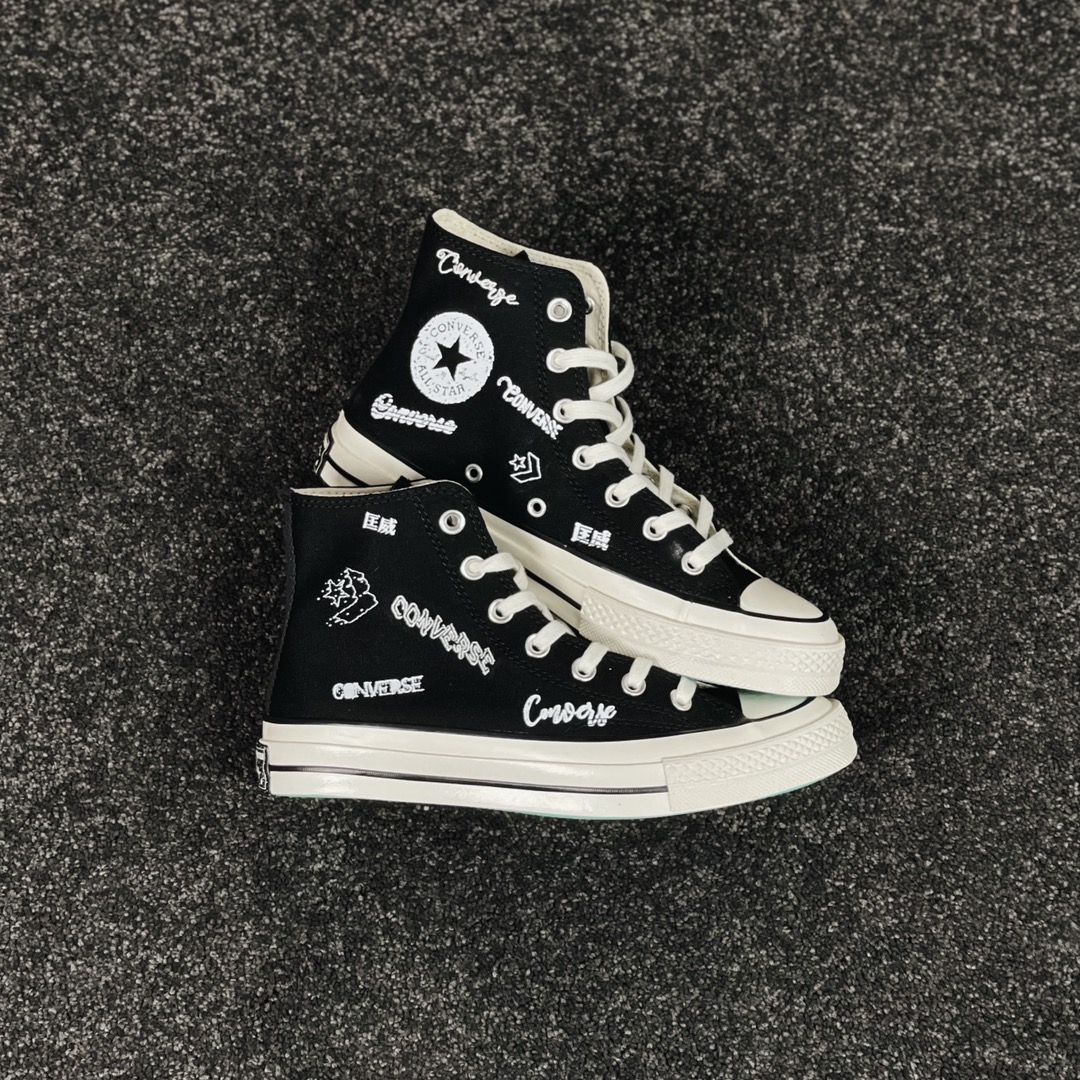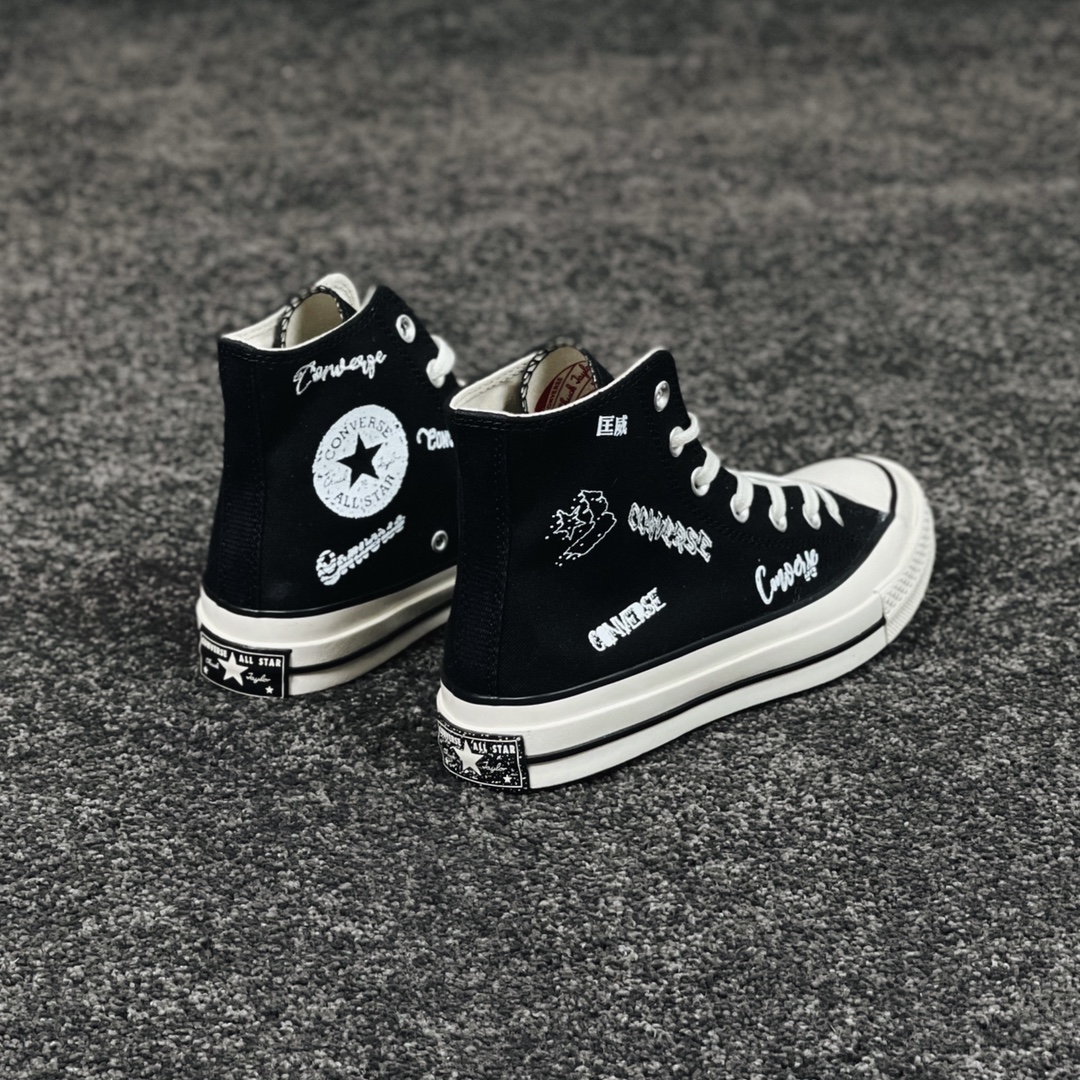 G0 小红书爆款 得物推荐Converse Chuck 1970s 涂鸦匡威经典黑白涂鸦花体Logo 休闲帆布鞋