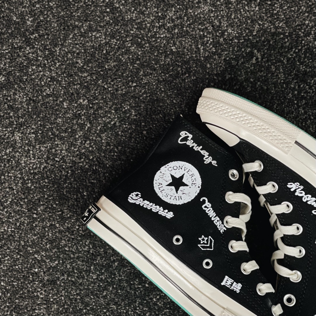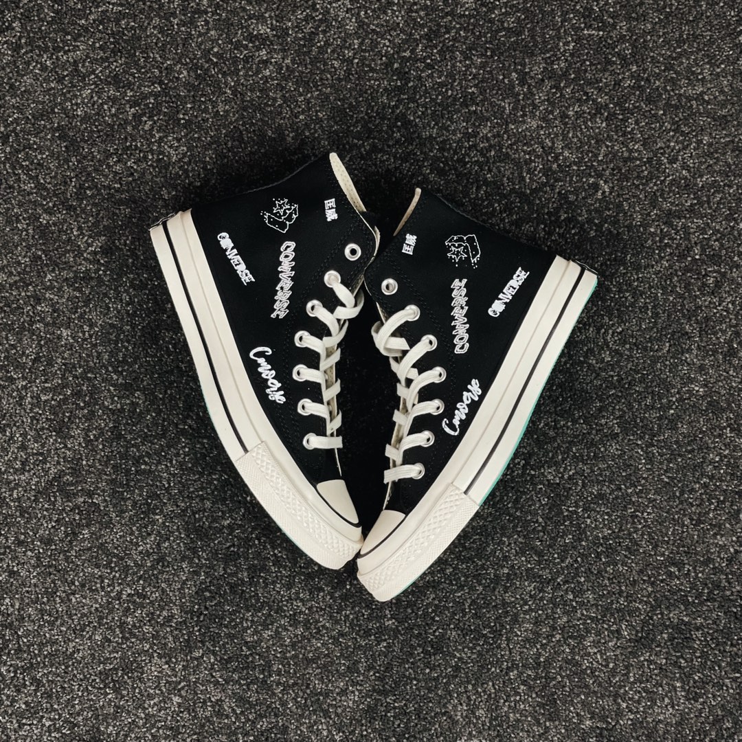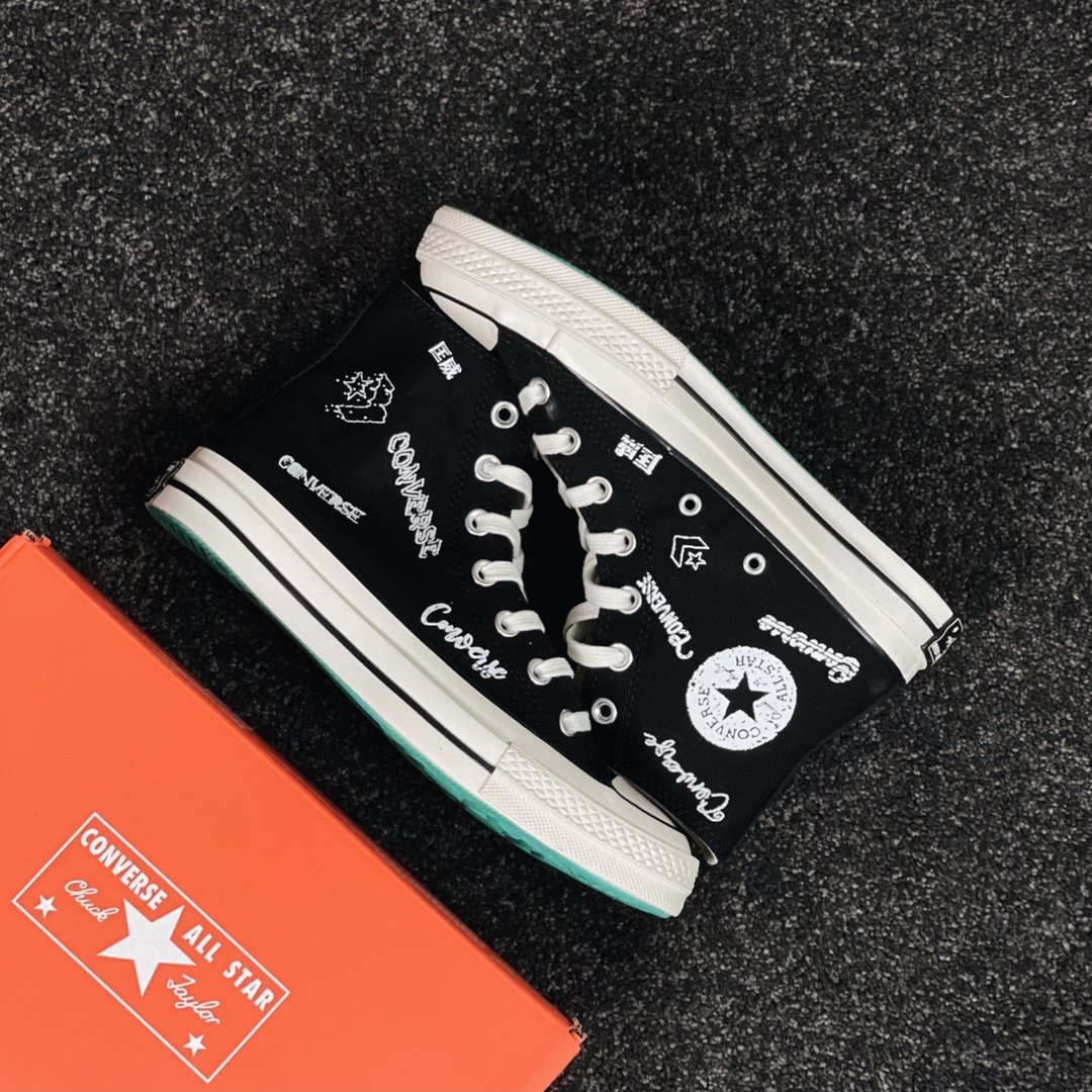 G0 小红书爆款 得物推荐Converse Chuck 1970s 涂鸦匡威经典黑白涂鸦花体Logo 休闲帆布鞋