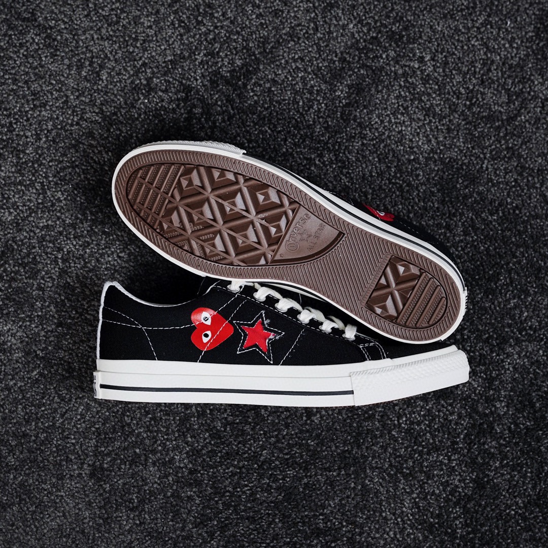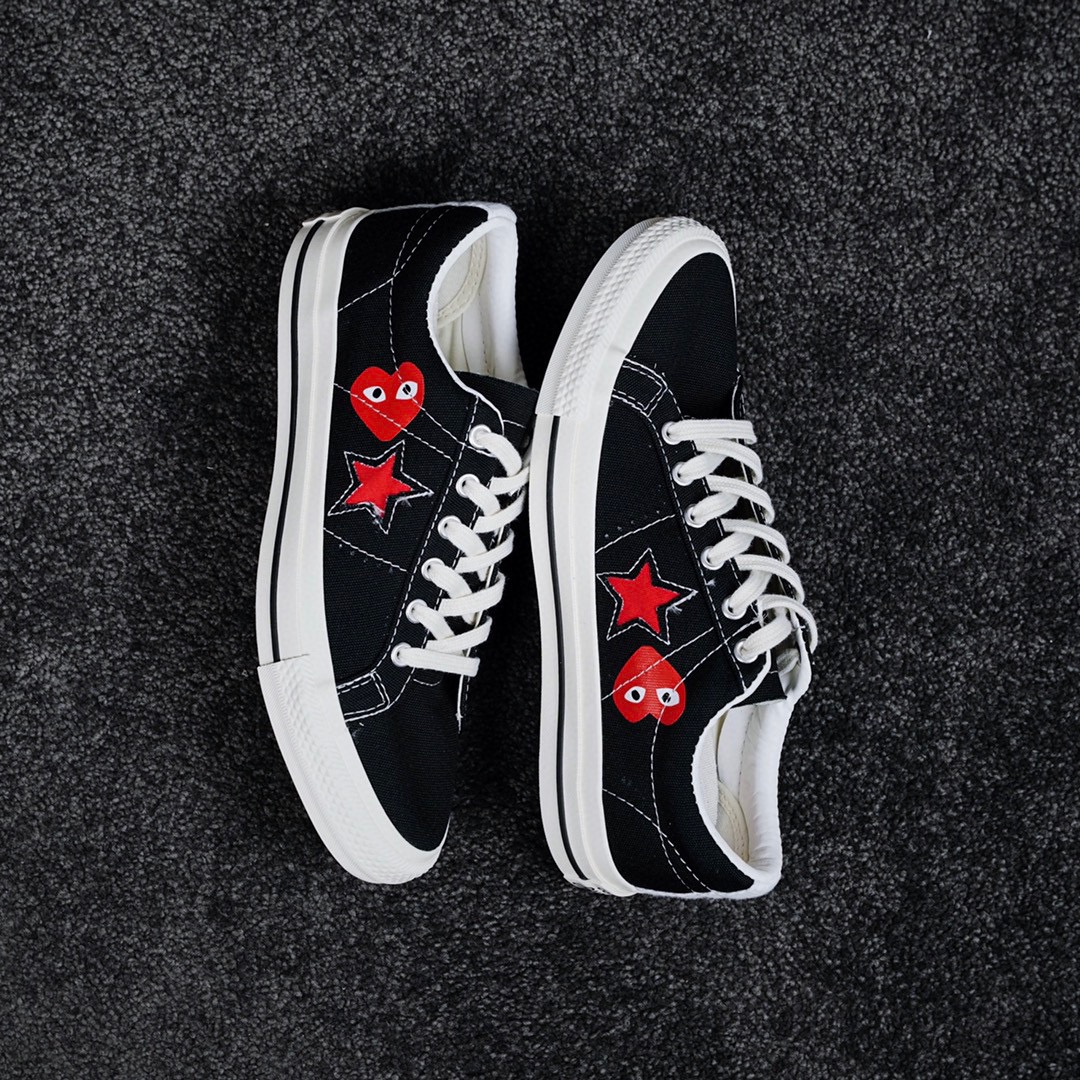 G0 “心”动预警! CDGPLAY全“星”出场匡威CDGPLAY联名12周年之际\t首次合作呈现滑板传奇鞋型ONESTAR依然是你喜欢的标志性“爱心眼”串联红色的心“星”相印CONVERSE X Comme desGarcons PLAY ONE STAR心”动PLAY以代表着创作热血的红色点缀滑板运动上脚让属于街头的回到街头本次联名系列新品含黑、白双色可选Size:35-44 (36.5 37.5 39.5 41.5 42.5)