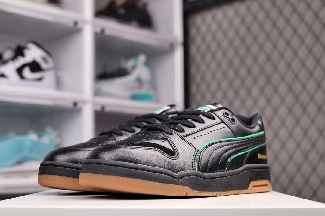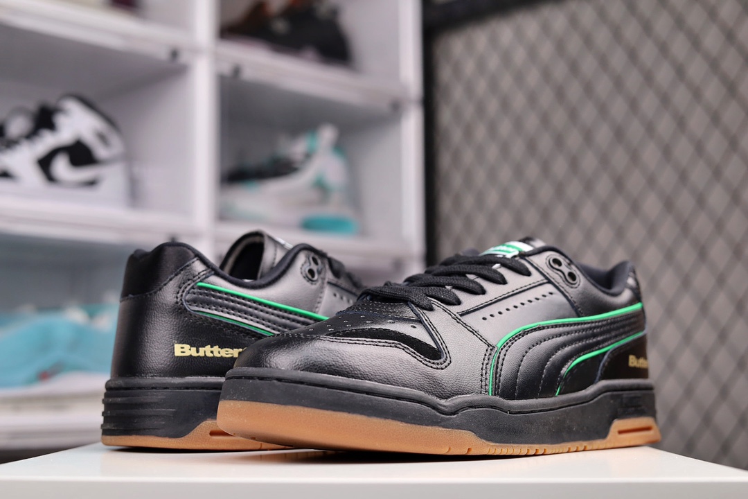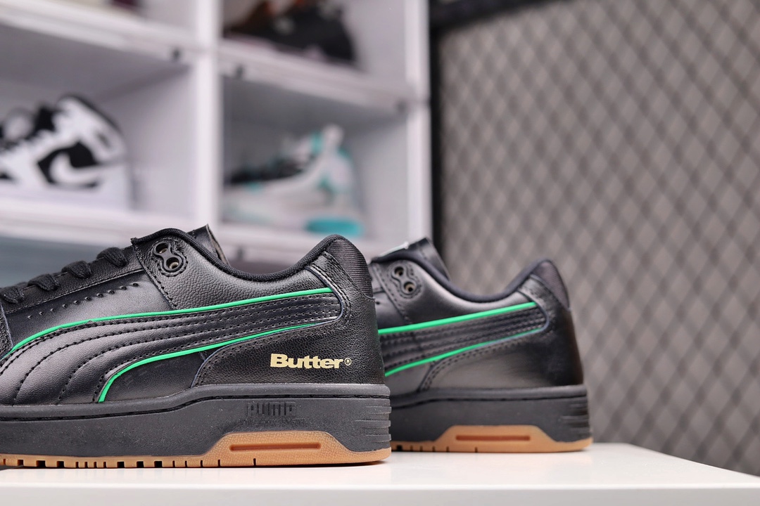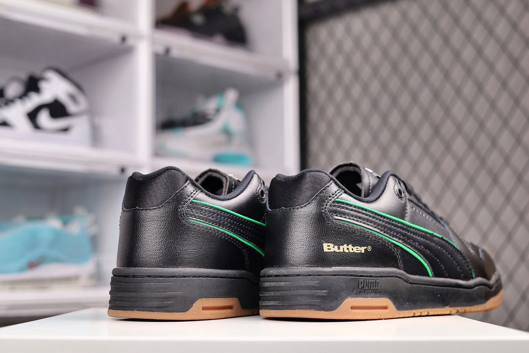 G0 男鞋真标原楦原纸版开发采用纤维皮革拼接翻毛皮革鞋面材质外置耐磨橡胶大底重返潮流街头,书写复古情怀携手澳大利亚滑板品牌Butter Goods x PUMA Slipstream Lo Retro 气流系列低帮复古百搭休闲运动篮球板鞋“皮革米白绿生胶底”993YBL货号:381787 尺码:40 41 42 43 44 45