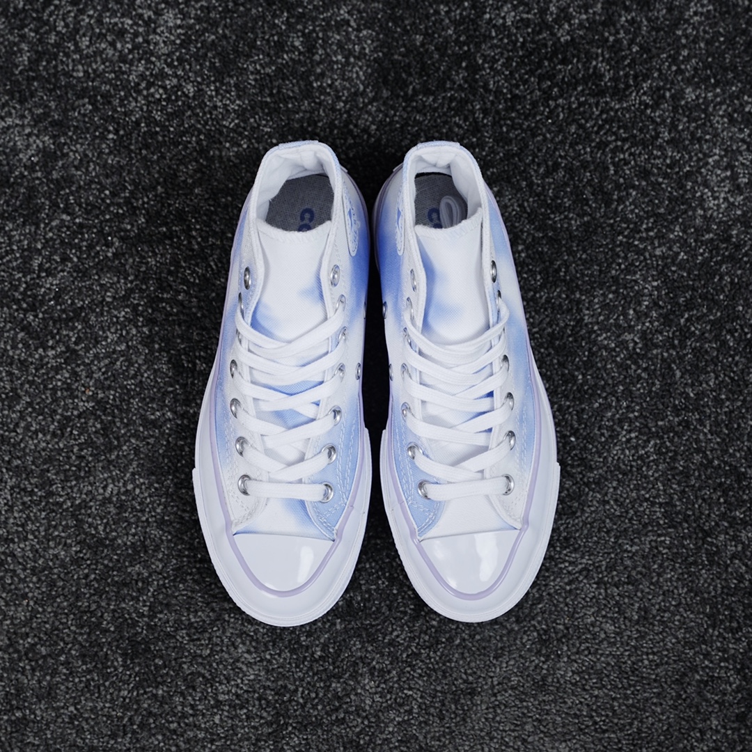 G0 这双匡威1970s也太适合春夏季了Converse Chuck 1970s 渐变紫鞋面采用白色、浅紫色渐变的效果呈现,中底走线和后跟鞋标采用浅紫色勾勒,颜值非常可质感满满