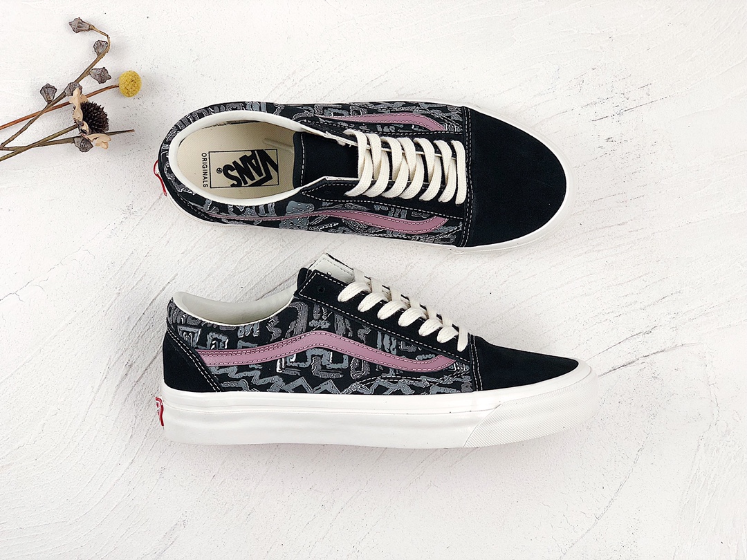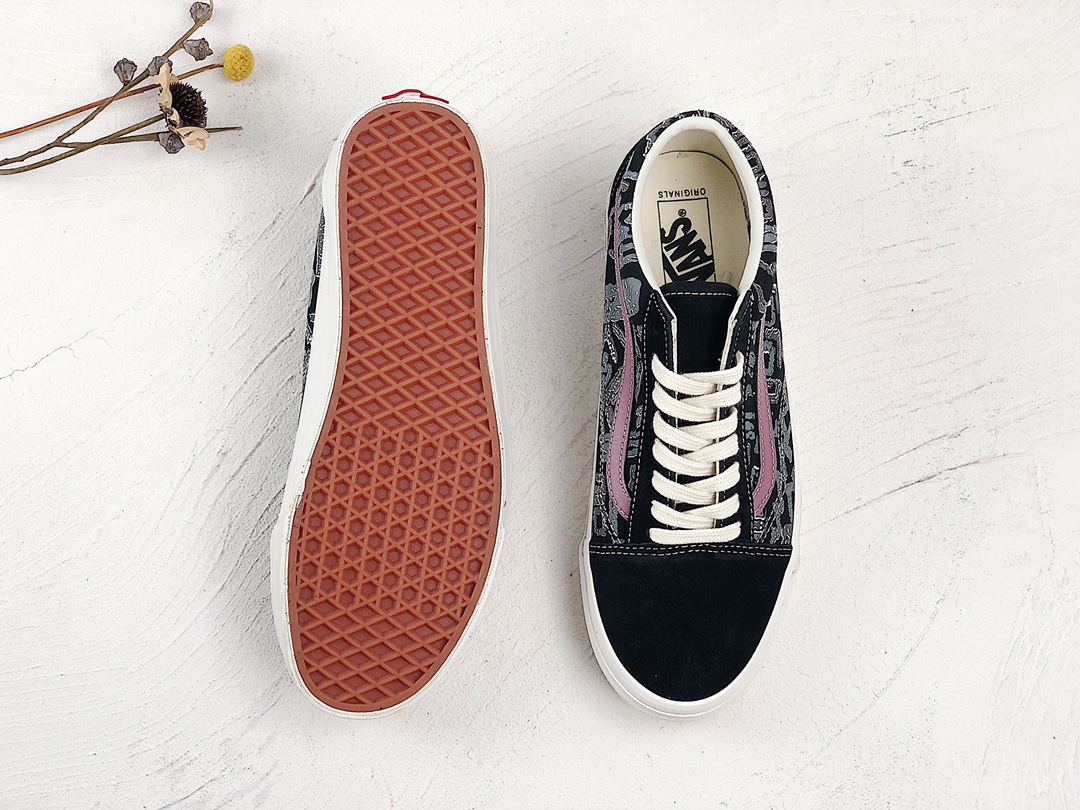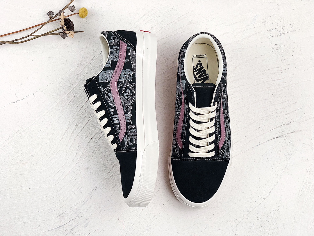 G0 这款OG Old Skool LX引入高端支线通过Vans最擅长使用的美式街头涂鸦风格推出黑、白个色调的新鞋款。这双 0G Old SkoolLX前后以黑色麂皮打造,两侧以帆布面打造,并将本次的主题涂鸦以深浅不一的灰色呈现于两侧,而 Old Skool最有标识度的侧边条纹则通过极显眼的紫色鞋款带来更为丰富的色彩搭配。