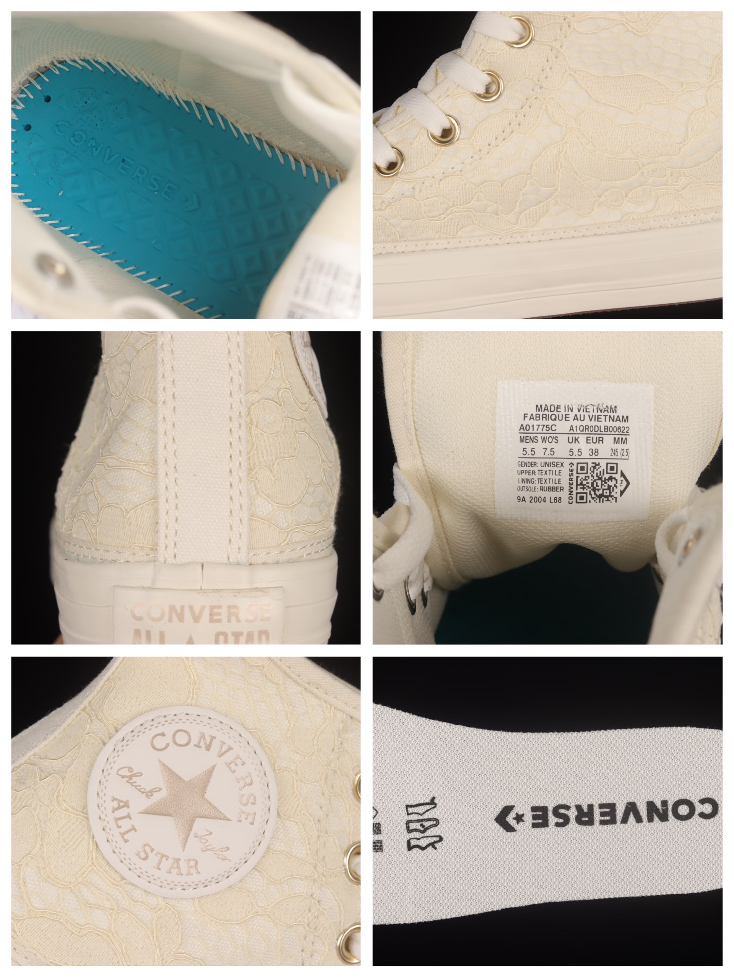 G0 附送一双丝绸鞋带 A01775CConverse Chuck Taylor All Star 奶白蕾丝日常搭配连衣裙 浅色系衣裤 整体温柔风一款非常显身高肤色的仙女鞋 奶白的蕾丝编织鞋身后跟标设计淡金色 吼吼看~蕾丝匡威 自带仙气的神仙Converse 没有匡威帆布鞋的夏天是不丸美的