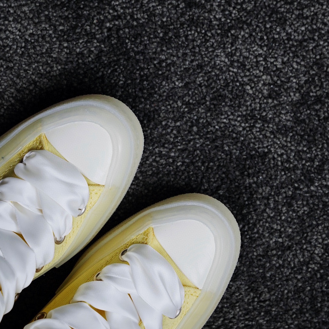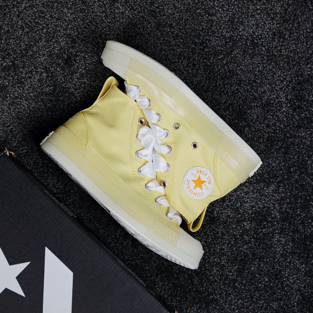 G0 2022七夕情人节限定配色Converse匡威 柠檬黄CX果冻透明底轻便高帮男女帆布鞋新品柠檬黄CX系列CX是匡威鞋款里面最轻最软上脚感觉非常软 乳白色鞋头和鞋底配上柠檬黄的帆布, 搭配丝绸鞋带永远的神\t,透明果冻围条真的显小 芝士女孩们速度冲~~~