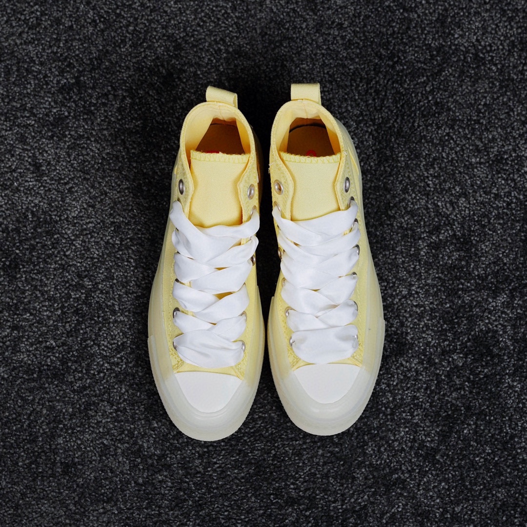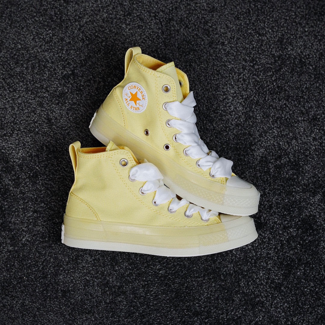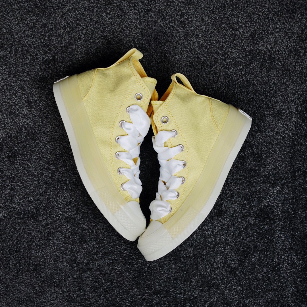 G0 2022七夕情人节限定配色Converse匡威 柠檬黄CX果冻透明底轻便高帮男女帆布鞋新品柠檬黄CX系列CX是匡威鞋款里面最轻最软上脚感觉非常软 乳白色鞋头和鞋底配上柠檬黄的帆布, 搭配丝绸鞋带永远的神\t,透明果冻围条真的显小 芝士女孩们速度冲~~~货号:A02428CSize:35-44 (36.5 37.5 39.5 41.5 42.5)