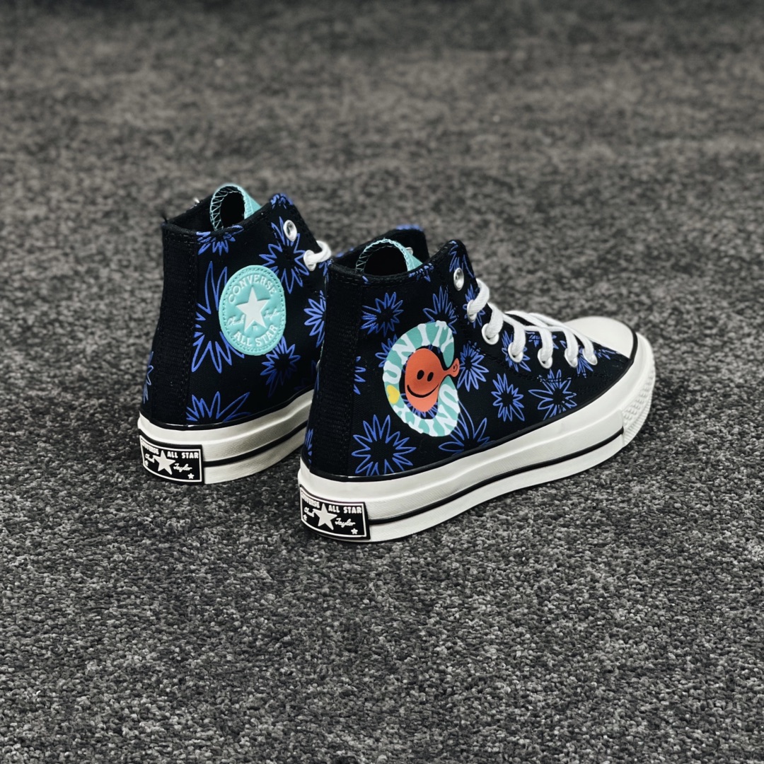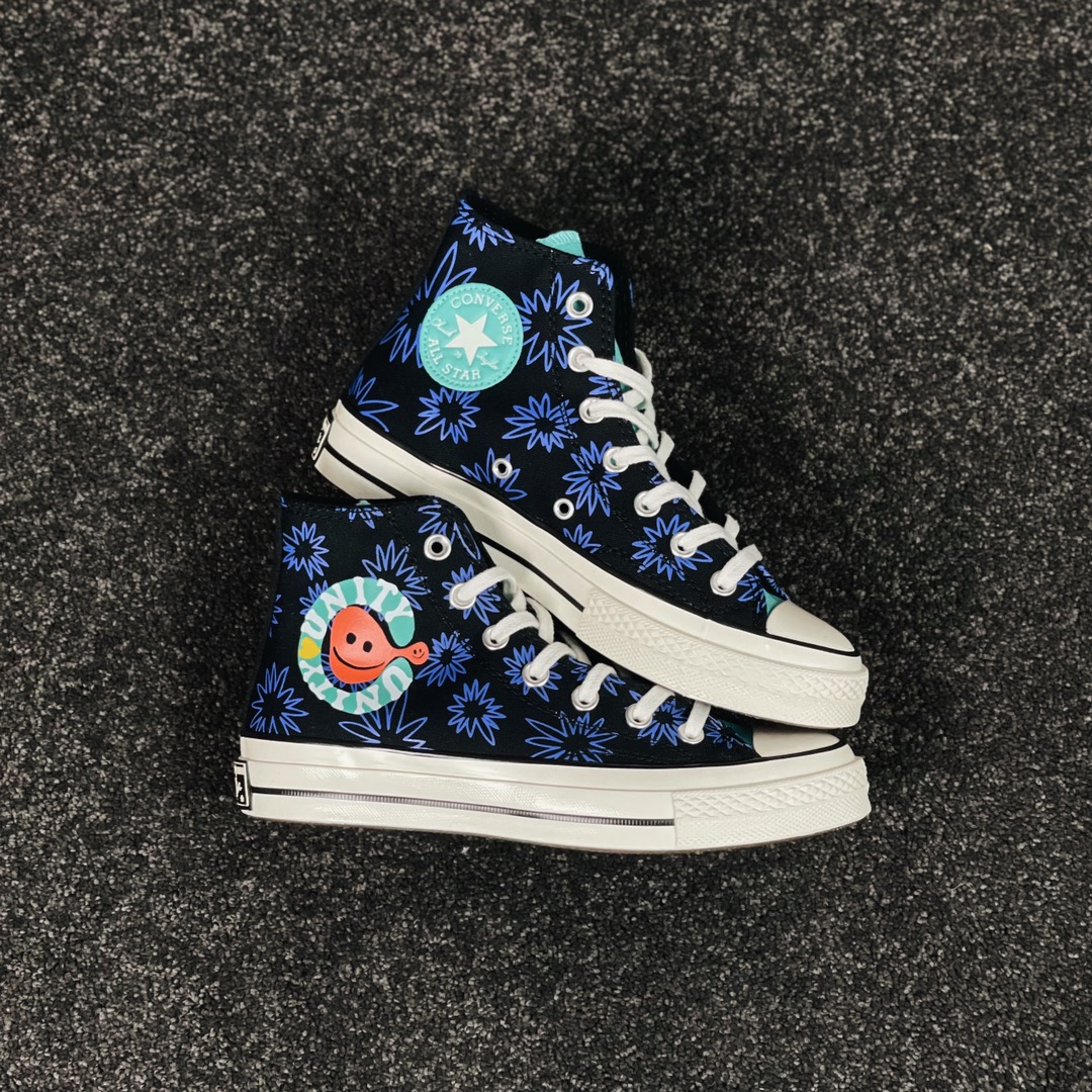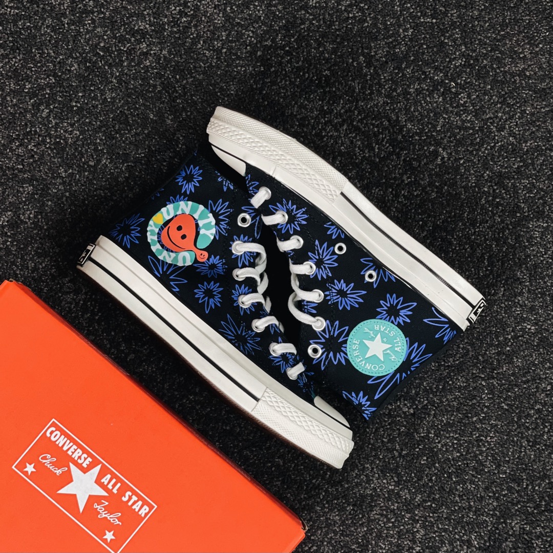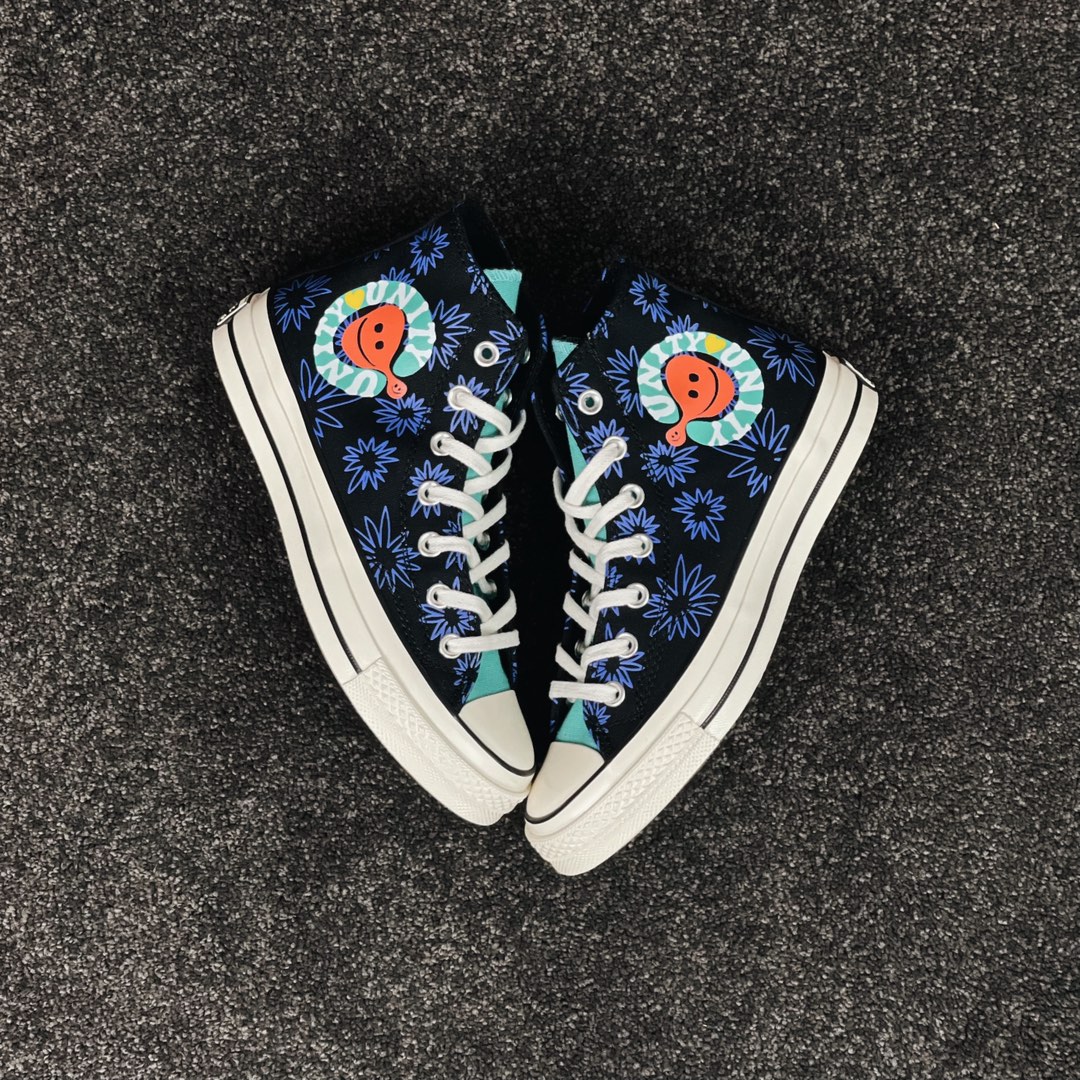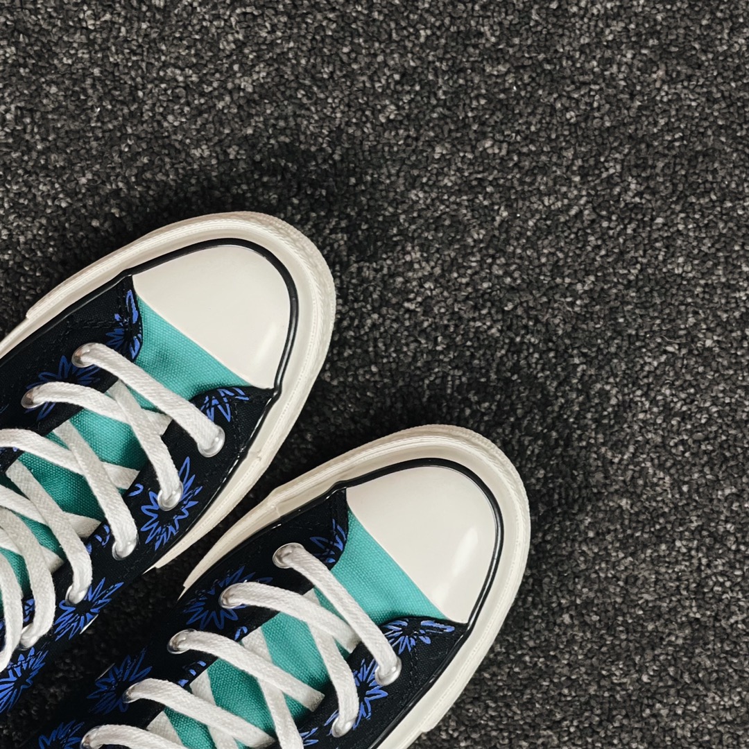 G0 2022春季Converse Chuck 1970s 地球涂鸦撞色款鞋面有机棉帆布材质,透气好,穿着舒适;鞋身饰有盛开的花朵,可可爱爱,富有积极向上的生命力;鞋舌和脚踝经典Chunk Taylor Logo采用撞色设计,颜色相呼应,增添动感。尺码:35-44(36.5 37.5 39.5 41.5 42.5)