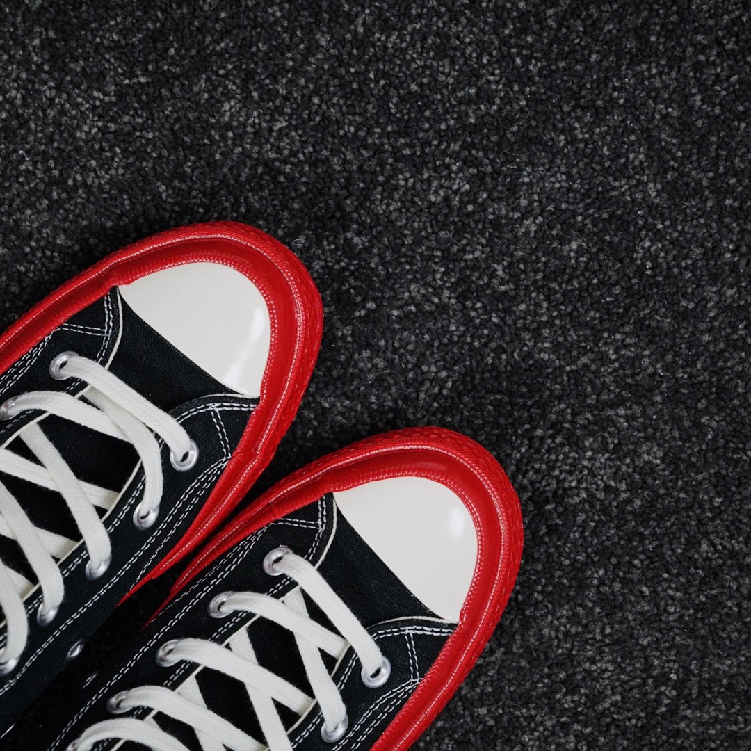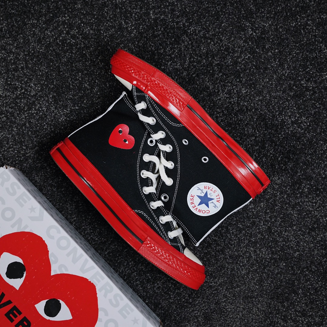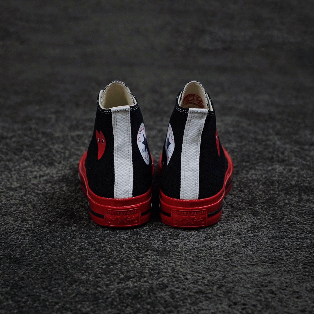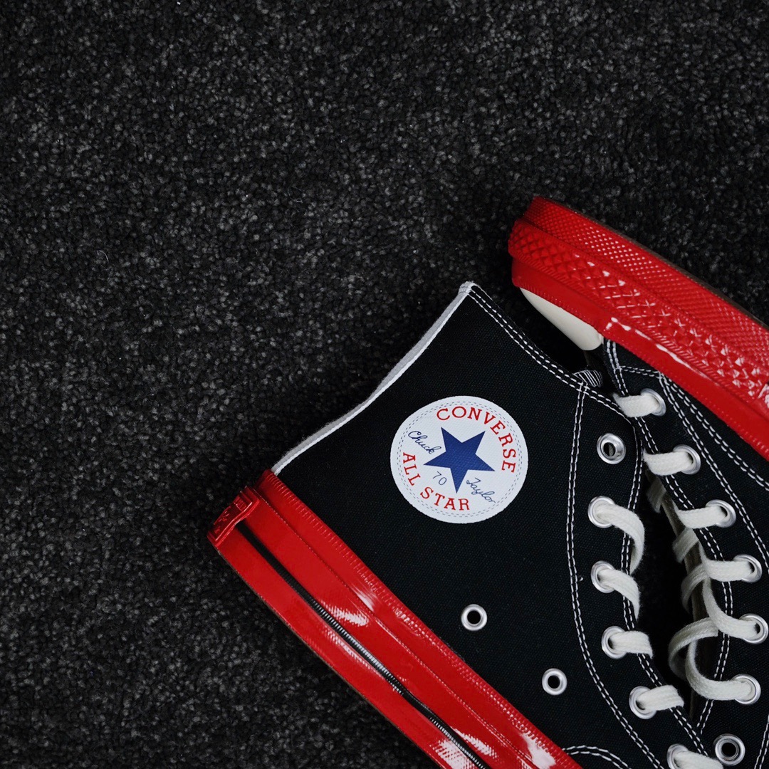 G0 CDG x Converse Chuck Taylor 1970s全新大红底 川久保玲 联名12周年此次CDG与匡威联名再出新意 大胆的鲜明红色大底让人眼前一亮 呼应鞋面标志性的红心标志 另外大底围条处随着配色不同亦会有相应的条纹 整体配色好看又亮眼 适合春夏季节穿搭