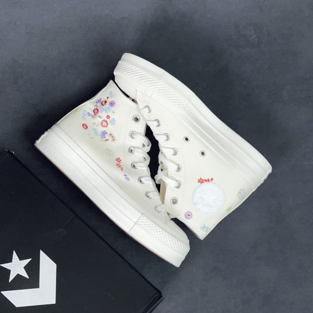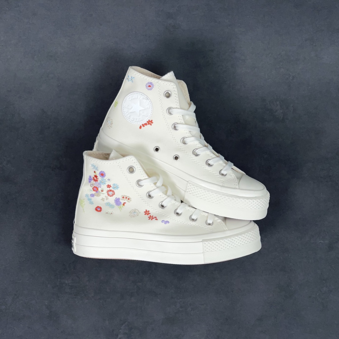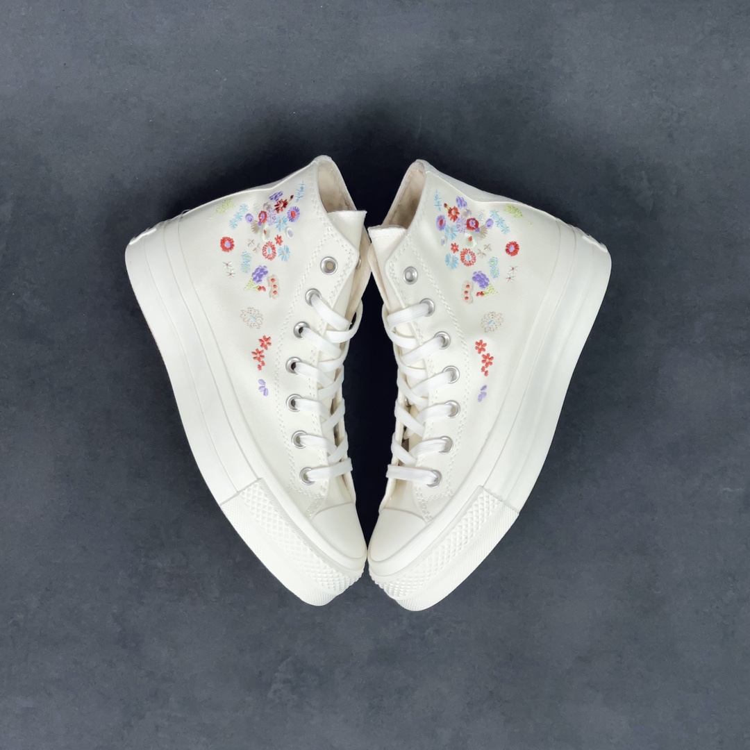 G0 Converse All Star Lift 厚底刺绣小花春暖花开 暖fufu的匡威厚底增高鞋把春天绣在了鞋子上 真的太棒了增高3cm 还很轻的增高厚底鞋尺码:35-40