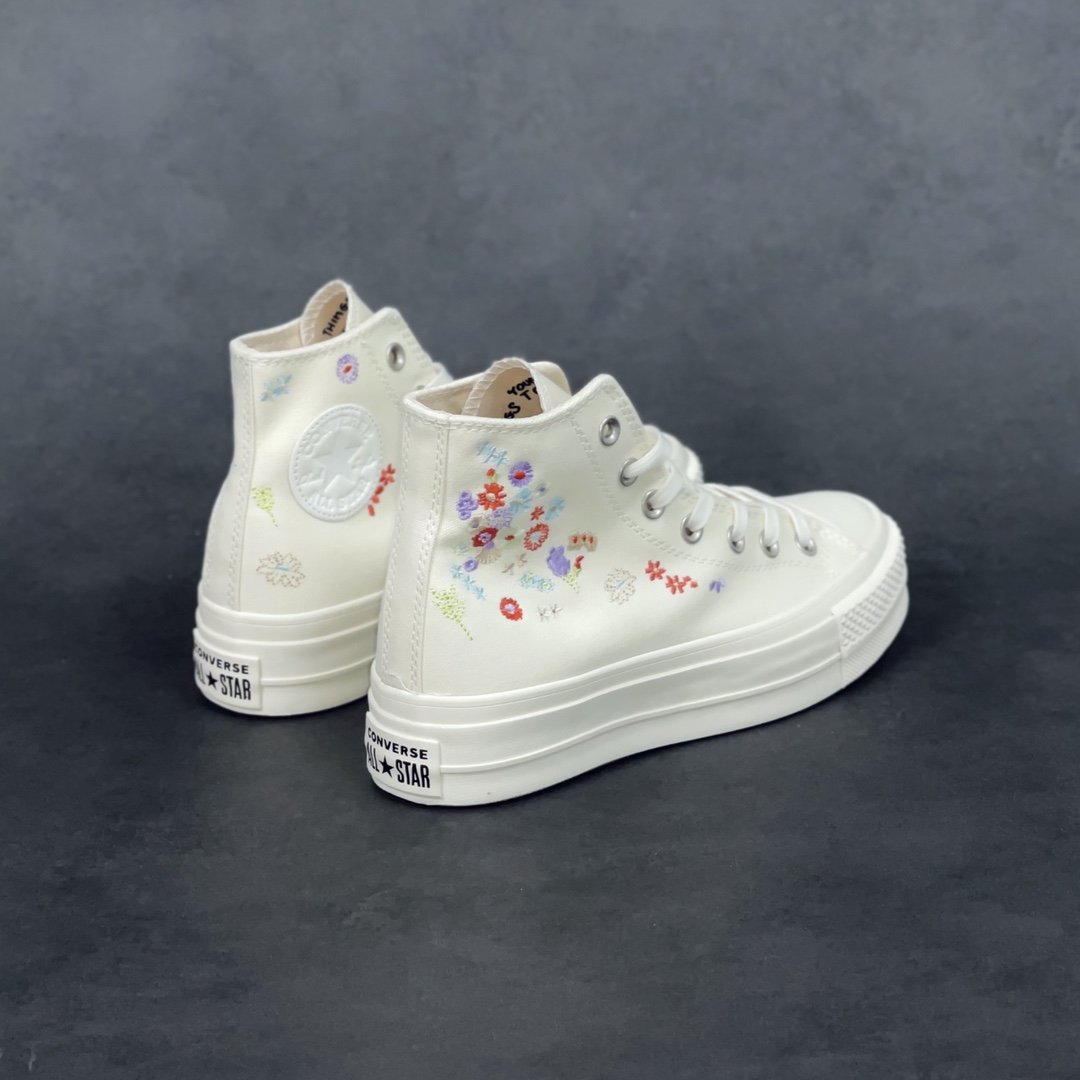 G0 Converse All Star Lift 厚底刺绣小花春暖花开 暖fufu的匡威厚底增高鞋把春天绣在了鞋子上 真的太棒了增高3cm 还很轻的增高厚底鞋
