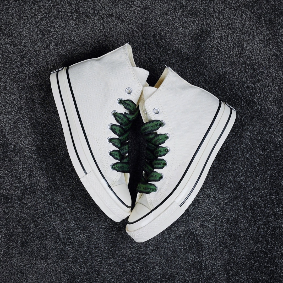 G0 Converse Chuck 1970s 奶白墨绿色匡威官方 高帮复古帆布字母鞋带 配备两双带字母图案鞋带 一双绿色鞋带一双白色鞋带随心搭配