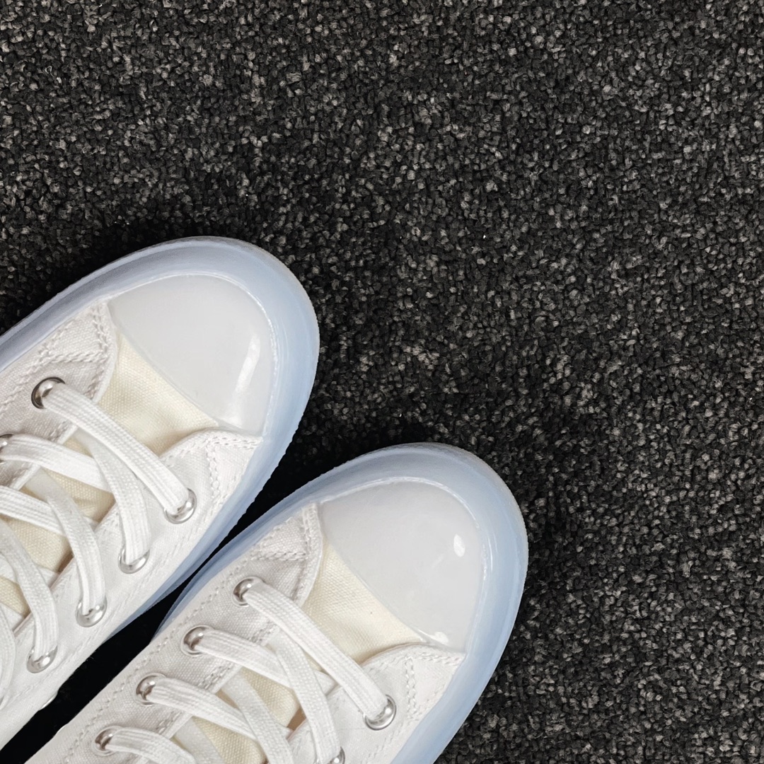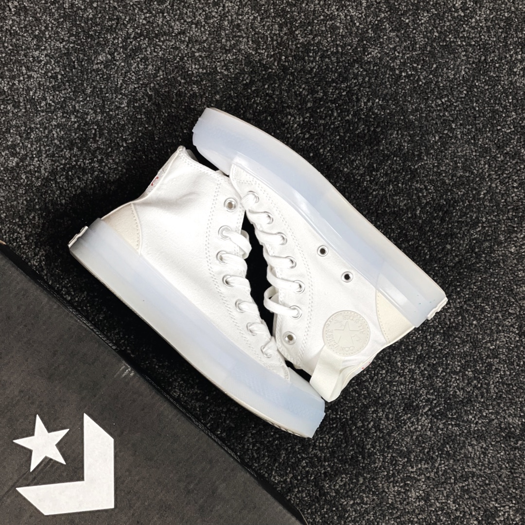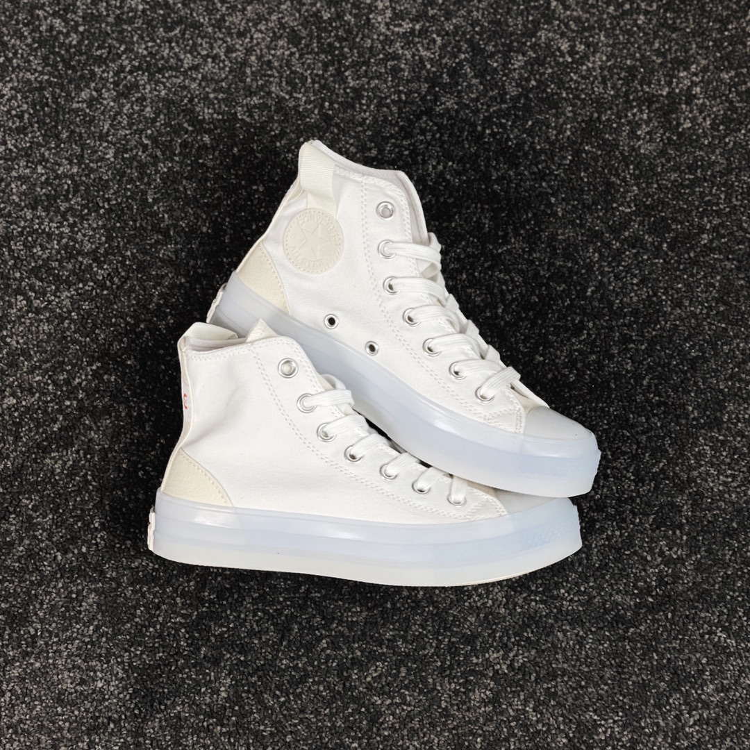G0 Converse Chuck 1970s 水晶果冻出货匡威最新CX系列水晶果冻鞋简约的配色 让人一眼爱上呀整体奶白和奶黄搭配,很奶很干净,超级百搭,最爱的还是CX独特的发泡PU鞋垫非常柔软,脚感超级无敌好走超级软,鞋子上脚很轻的,拉环跟后跟呼应色 细节拉满了,这款可以说是全CX系列里面颜值NO.1 特别像当初张艺兴同款和白敬亭同款的结合强烈推荐呀!