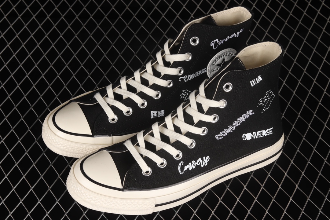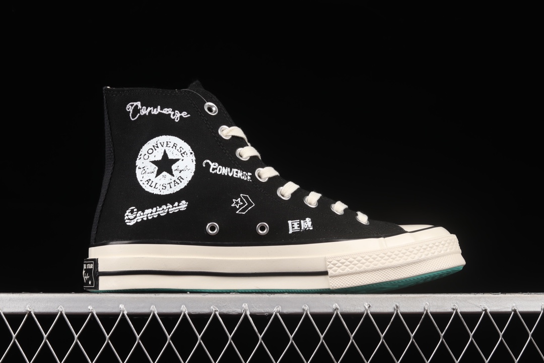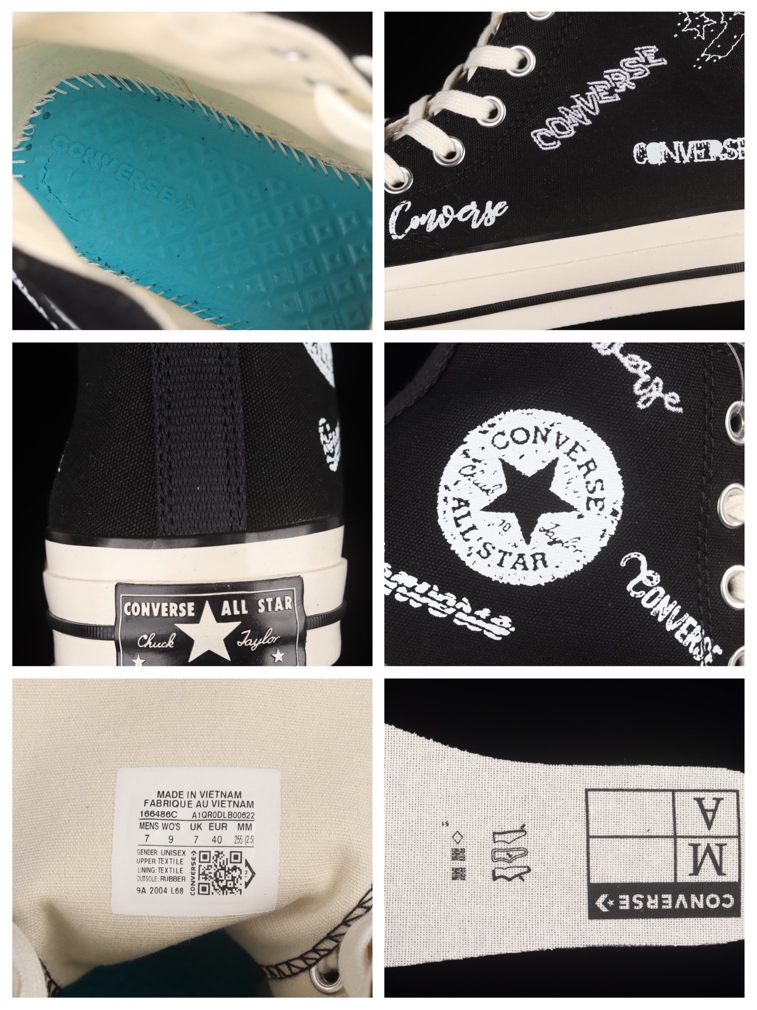 G0 Converse Chuck 1970s 经典黑白中文涂鸦花体文字LOGO可口可乐休闲帆布鞋 166486C