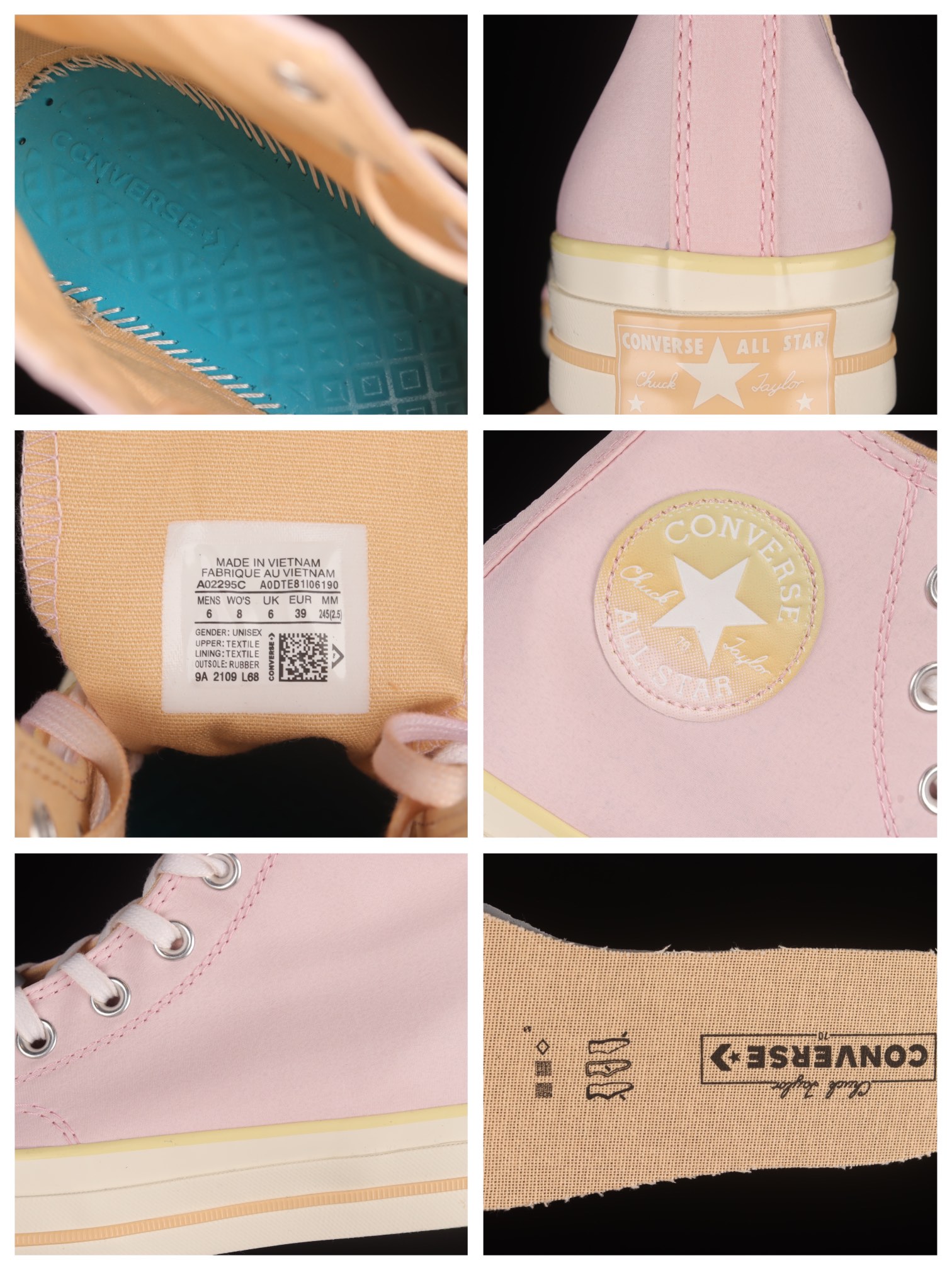 G0 Converse Chuck 70 Hi 全新水果拼盘 水蜜桃粉 皮革高帮休闲板鞋 A02295C鞋款以粉色帆布鞋面、绿色鞋底、杏色内衬及中底线条、水果元素装饰呈现极具春夏风格的鞋身设计。全新的女生专属规格也令这款经典球鞋增添几分活泼的运动感觉尺码:35 36 36.5 37 37.5 38 39 39.5 40 qs