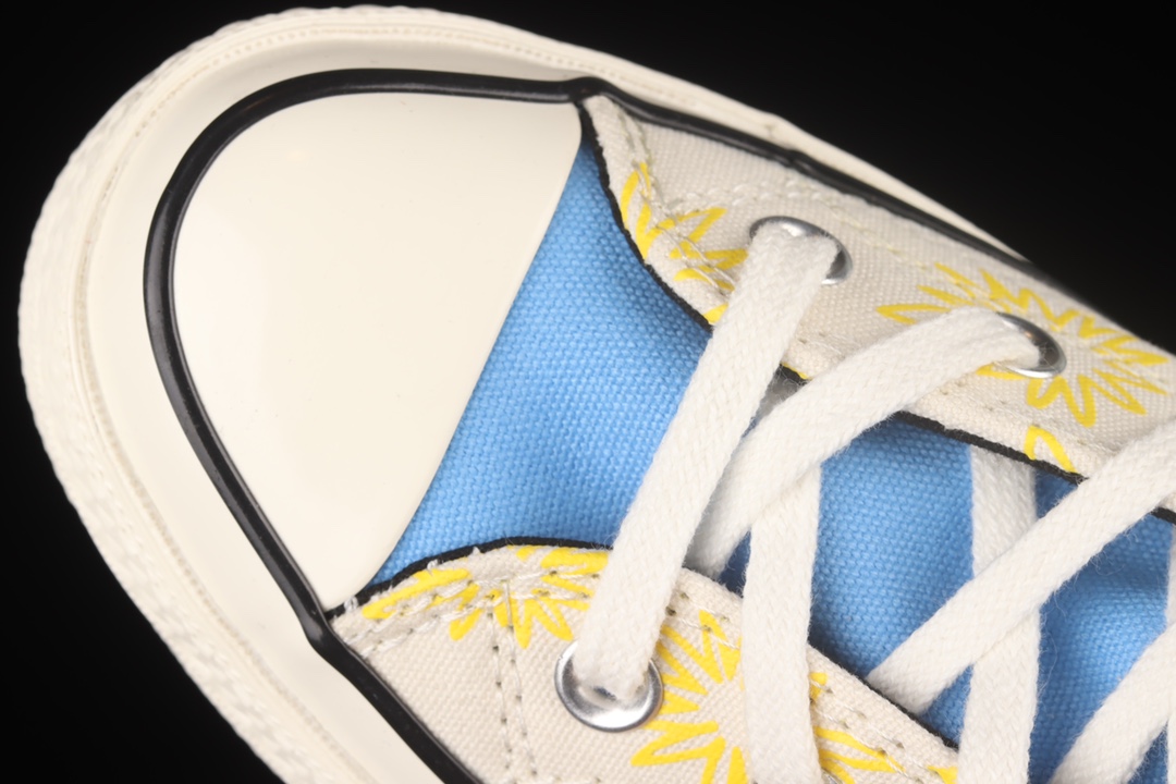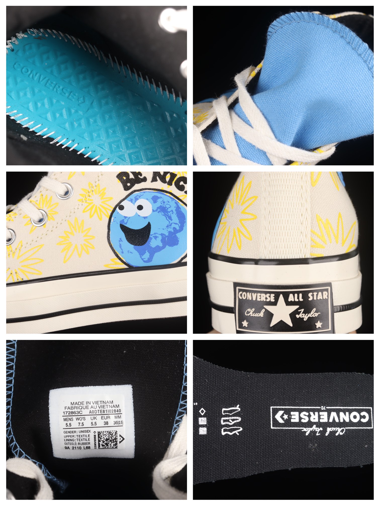 G0 Converse Chunk Taylor 2022年春季 地球涂鸦 撞色高帮休闲板鞋 172863C鞋面有机棉帆布,透气好,穿着舒适治鞋身饰有盛开的花朵,可可爱爱,富有积极,向上的生命力 鞋舌和脚踝经典Chunk Taylor Logo采用撞色设计,颜色相呼应,增添动感~