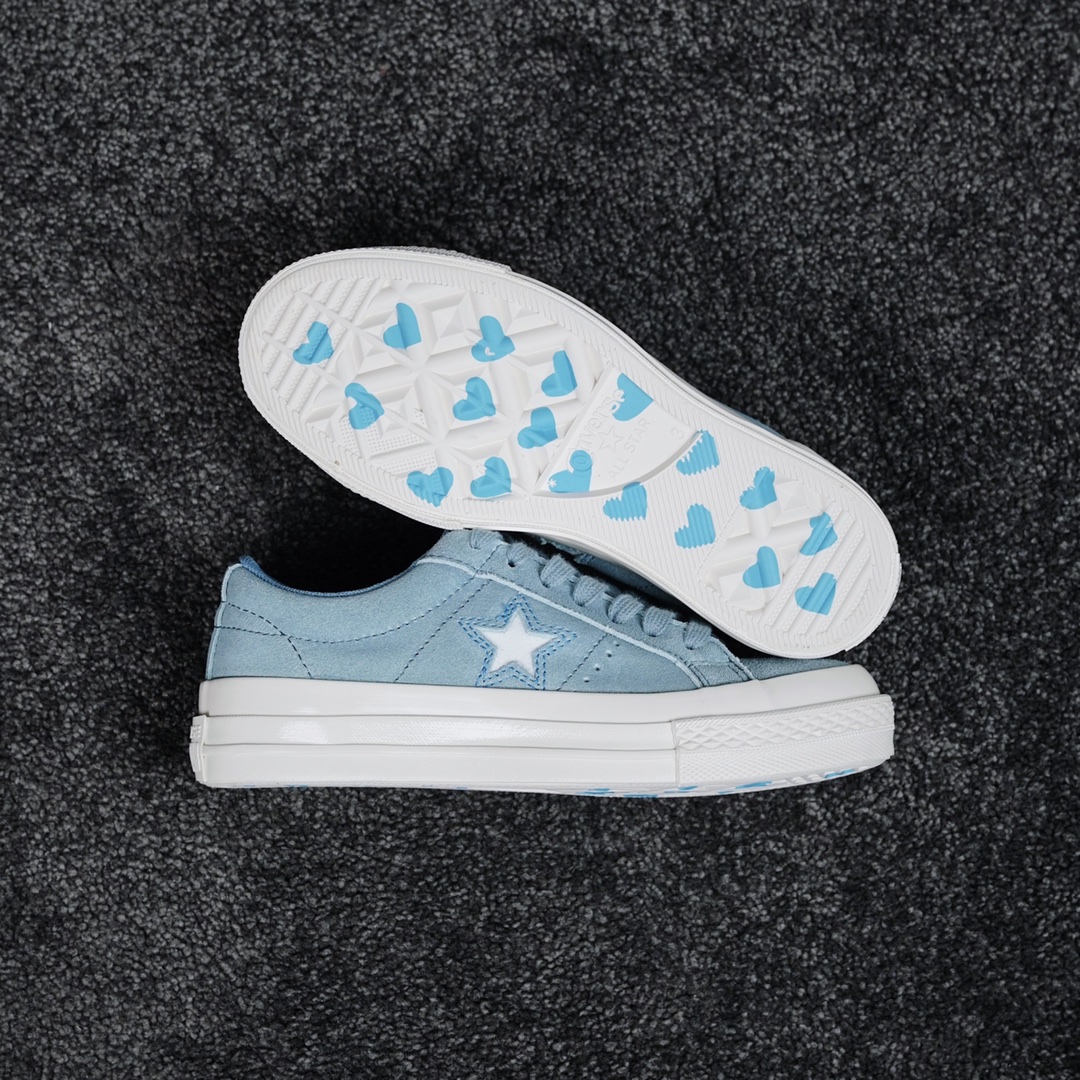 G0 Converse One Star 麂皮雾霾蓝匡威官方 情人节限定爱心底休闲板鞋货号:163 H0 c尺码:35 36 36.5 37 37.5 38 39 39.5 40 41 41.5 42 42.5 43 44