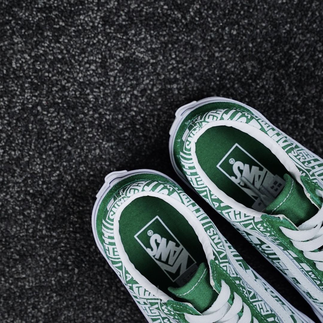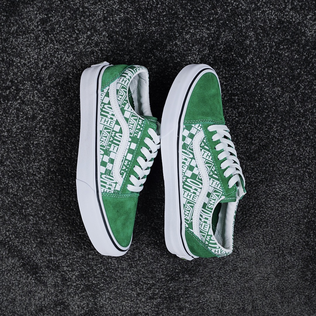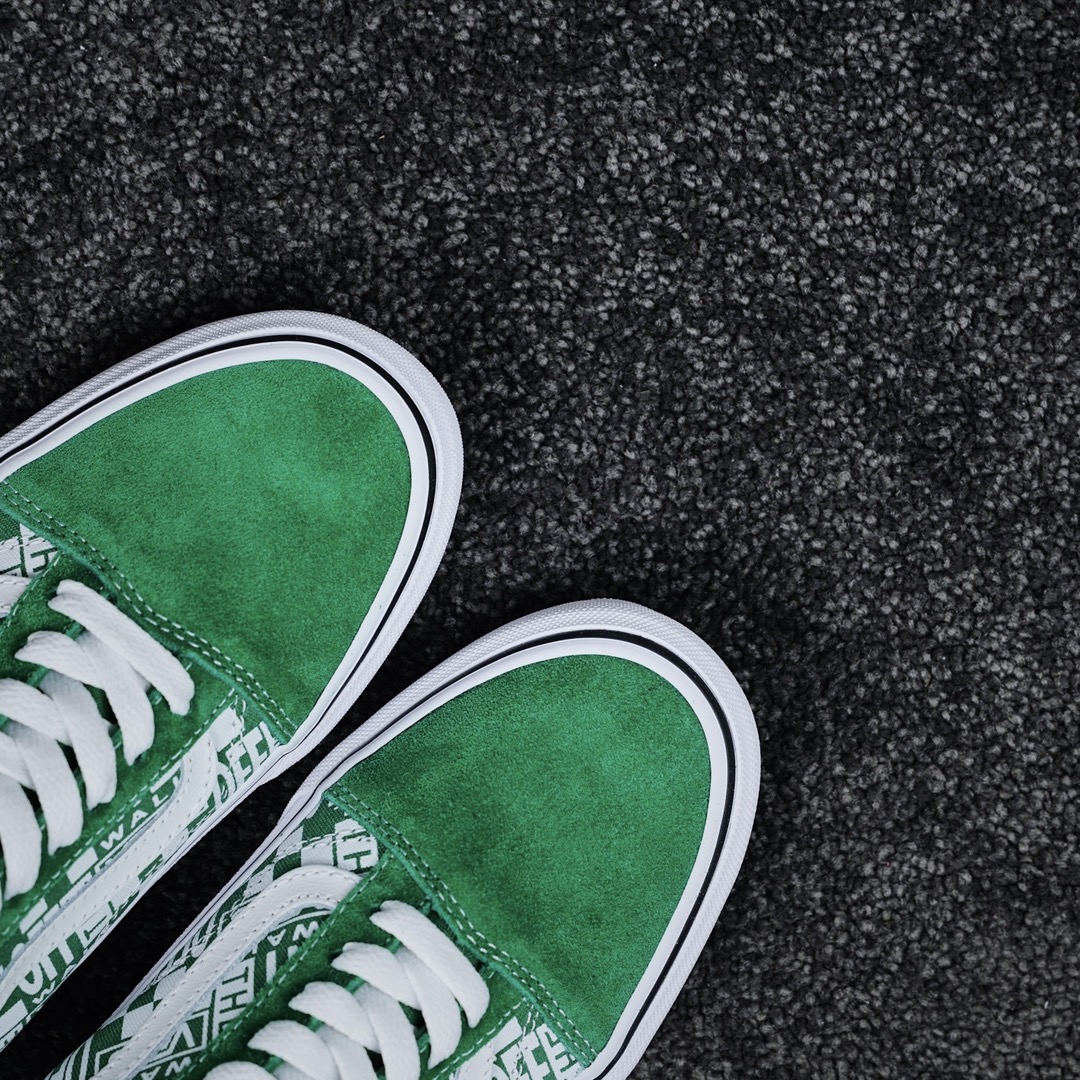 G0 Off The Wall & Vans Old Skool 联名款OFF THE WALL此次与VANS再度联名,释出高帮新配色,材料选用绿色麂皮色调为主,鞋身采用原厂进口8A布料印有OFF-THE WAL & VANS字样的新版图案,整体搭配给人以经典复古的理念,又不失现代感年轻个性化的风格