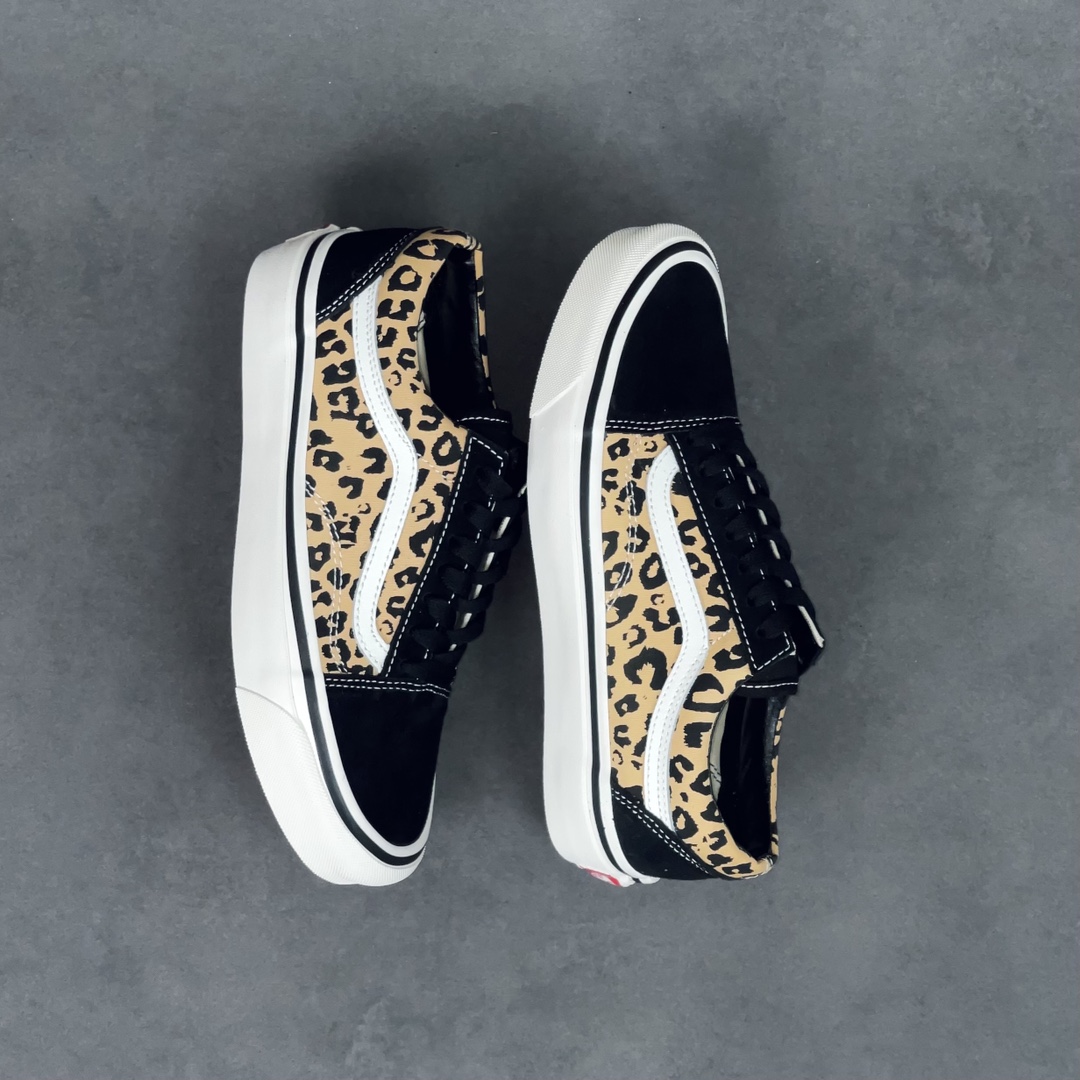 G0 Vans Anahiem Factory Skool 36 DX 安纳海姆系列 豹纹更改了最初的单调 强加黑色包边使得整体更加合适舒适真标真硫化 原厂DT钢印+楦头货号:VN0A54F39GI尺码:35 36 36.5 37 38 38.5 39 40 40.5 41 42 42.5 43 44工艺:硫化1:1(重量1:1、真标、原钢印、材质标、鞋型标、合格证)